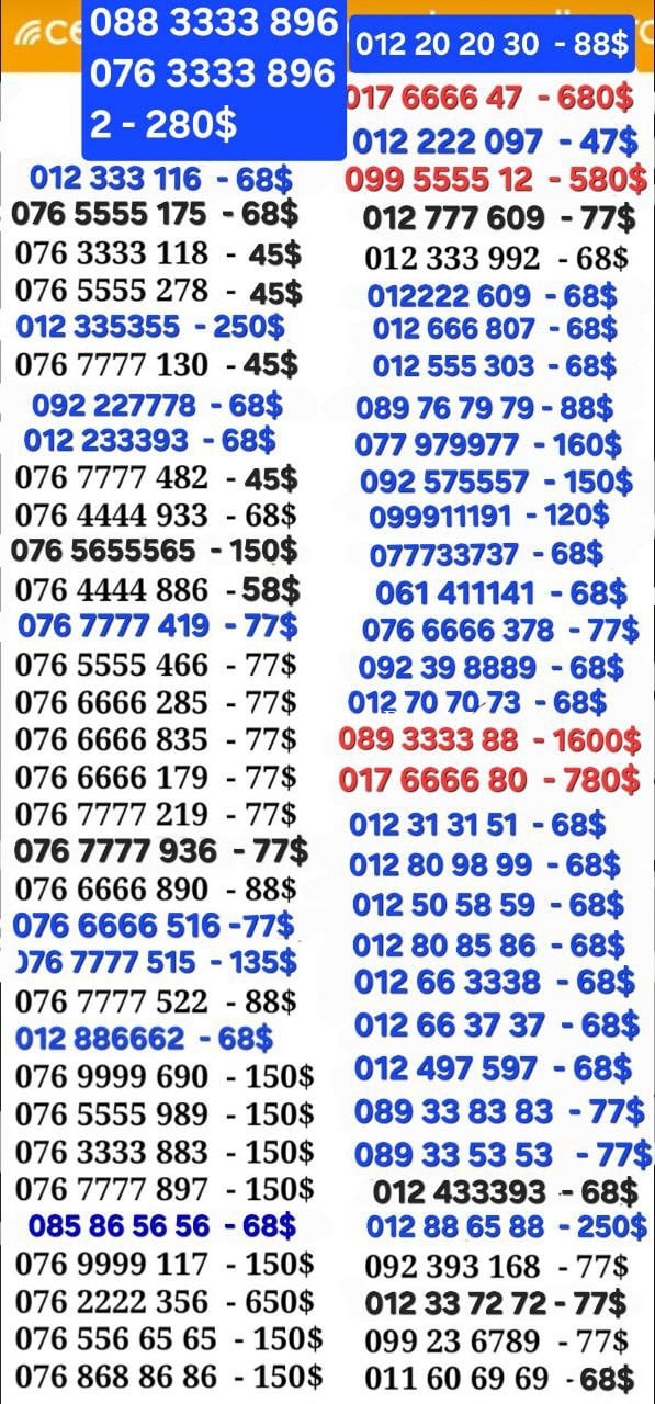 លក់លេខការ៉េសែលខាតស្អាតៗតម្លៃសមរម្យ🌹🌺 010 501 555 telegram 012 555 702 ភ្នំពេញ។ 📥 https://t.me/Bottra555
