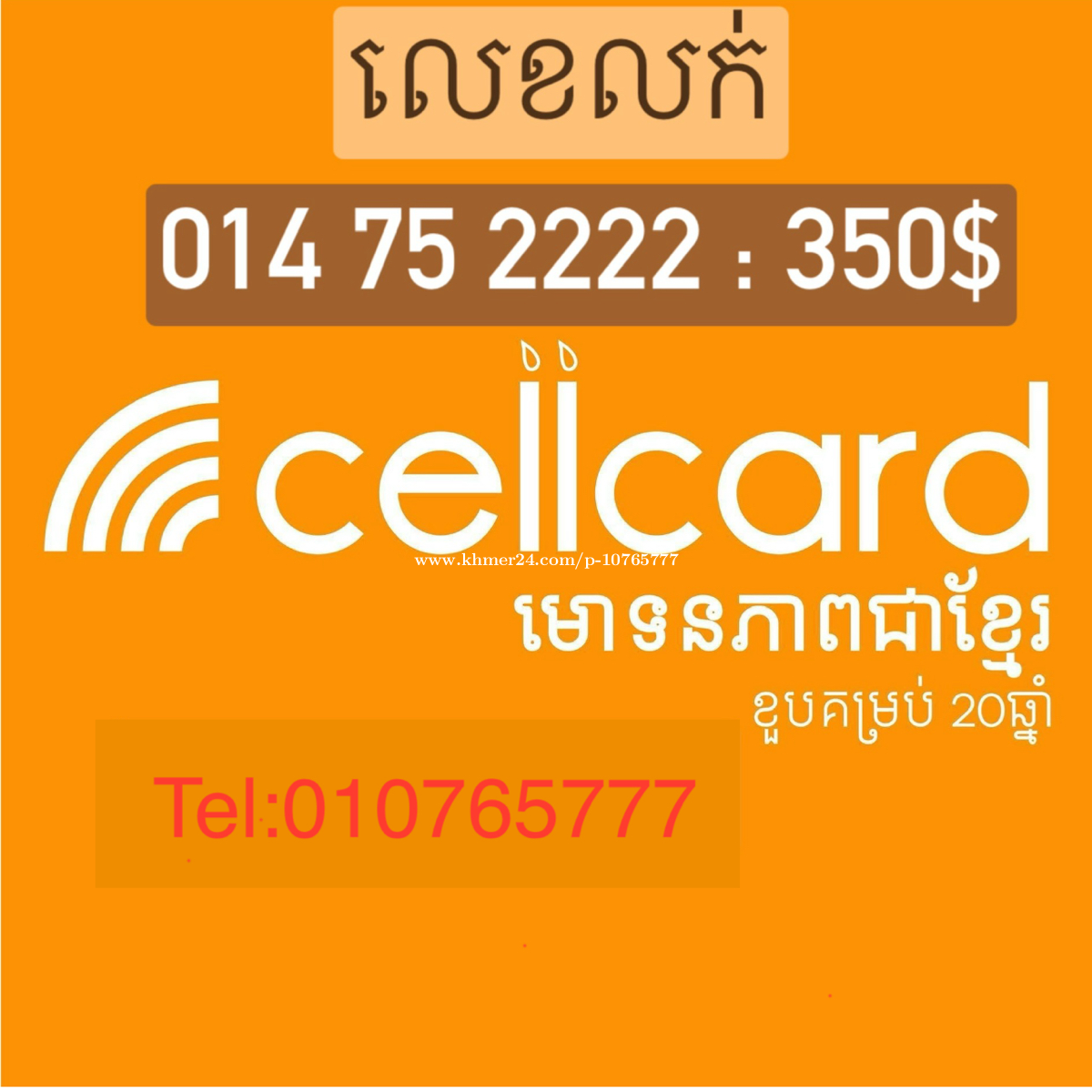 លេខការ៉េក្បាល់ថ្មី 014 ប្រពន្ឋ័ cellcard