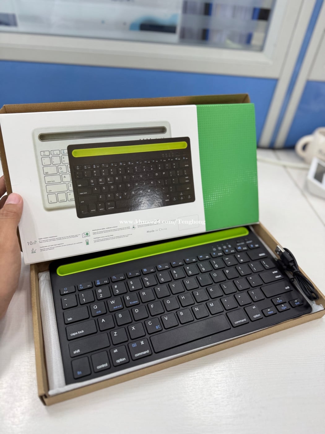 ទើបទិញថ្មីប្រអប់អត់ទាន់បានប្រើ ទិញ 28$ លក់វិញតែ 19$ ⌨️ Keyboard Bluetooth ប្រើបានគ្រប់ IOS, Android, Window, Mac -Connect បានម្ដង 2 Devices -សាកថ្មម្ដងប្រើបានខ្ទង់ 80 ម៉ោង -Standbyបានប្រហែល: 9 ខែ