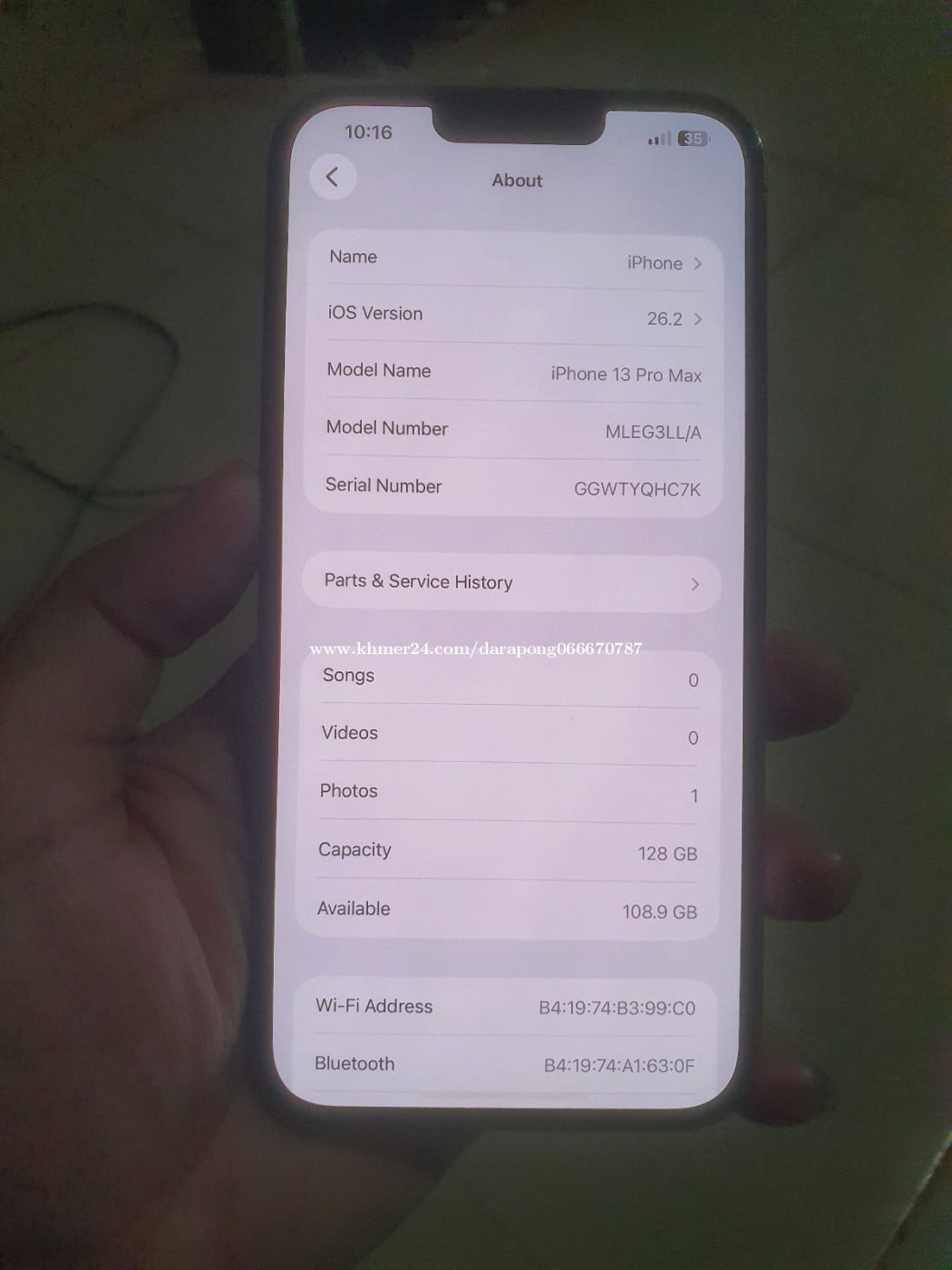 លក់ឬដូរ iPhone 13 Pro Max LLA 128G ធ្លាប់ប្ដូរតែថ្មមួយគត់ ក្រៅពីហ្នឹងស៊ីនទាំងអស់
