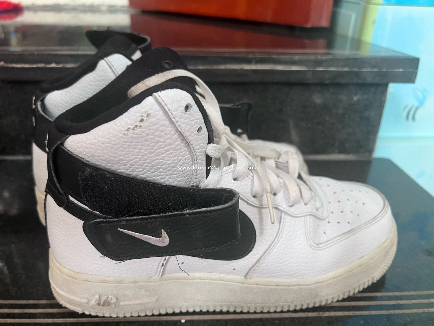 មានស្បែកជើងបុរសប្រើរួចដែលខ្ញុំបានទិញពីសហរដ្ឋអាមេរិកសម្រាប់កូនរបស់ខ្ញុំ ប៉ុន្តែឥឡូវនេះវាតូចពេកសម្រាប់ពួកគេ។ 1. Nike Air Force 1 (High) - Size 42.5 (ទិញពីអាមេរិក)