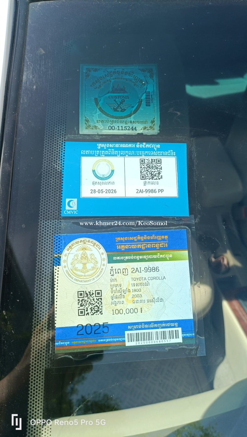 លក់ corolla 2003 ក្នុងលឿង ធានាឡានស្អាត កង់ថ្មីបួនគ្រាប់ ម៉ាសុីននឹងប្រអប់លេខស្ទុះ ម្ចាស់ដើមទីមួយ 012209xxxClick To Call/0969999xxxClick To Call telegram 8600$ចរចារ ទីតាំង ភ្នំពេញ