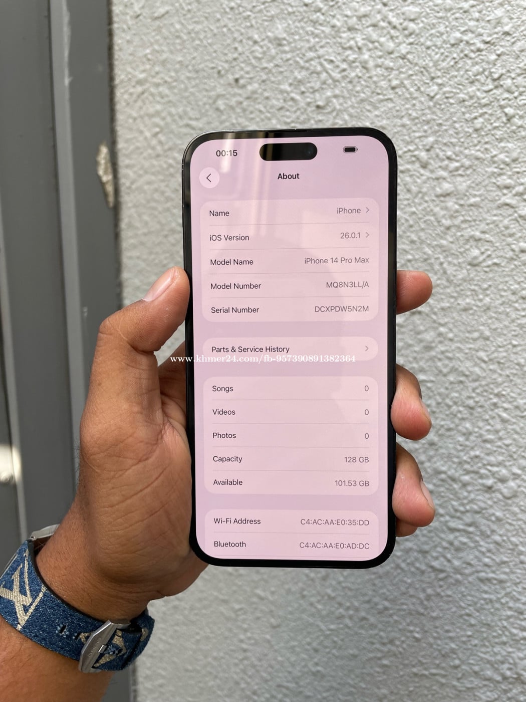 លក់ iPhone 14 Promax 128gLL/Aប្រេីE-simបាន2បងបងភិនភាគតួដូចរូបបងបងធ្លាប់ប្ដូlcdនិងBatteryក្រុមហ៊ុនបងបង🙏🏻🧧
