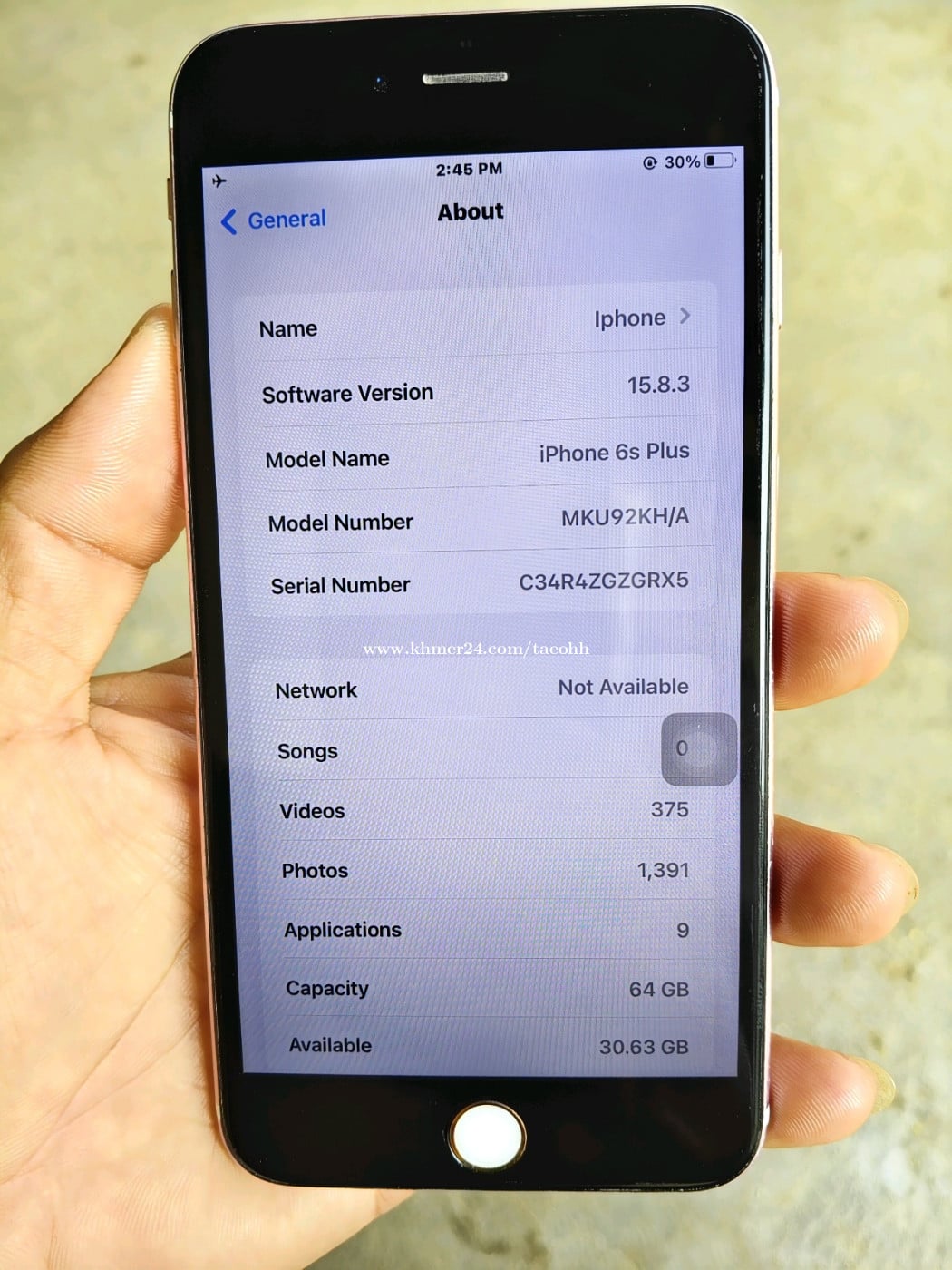 លក់ iphone 6s plus 64GB មានស្កេន ខូចកាមេរ៉ា ក្រៅពីនឹងគ្មានបញ្ហាអីទាំងអស់ សេវាខ្លាំងដើរលឿនស្រួលប្រើ ថ្មកាន់មានតែទូរស័ព្ទ លក់ 25$ ទូរស័ព្ទម្ចាស់ដើមផ្ទាល់កាលទិញថ្មីប្រអប់ ទីតាំង រង្វង់មូលគួរស្រូវ