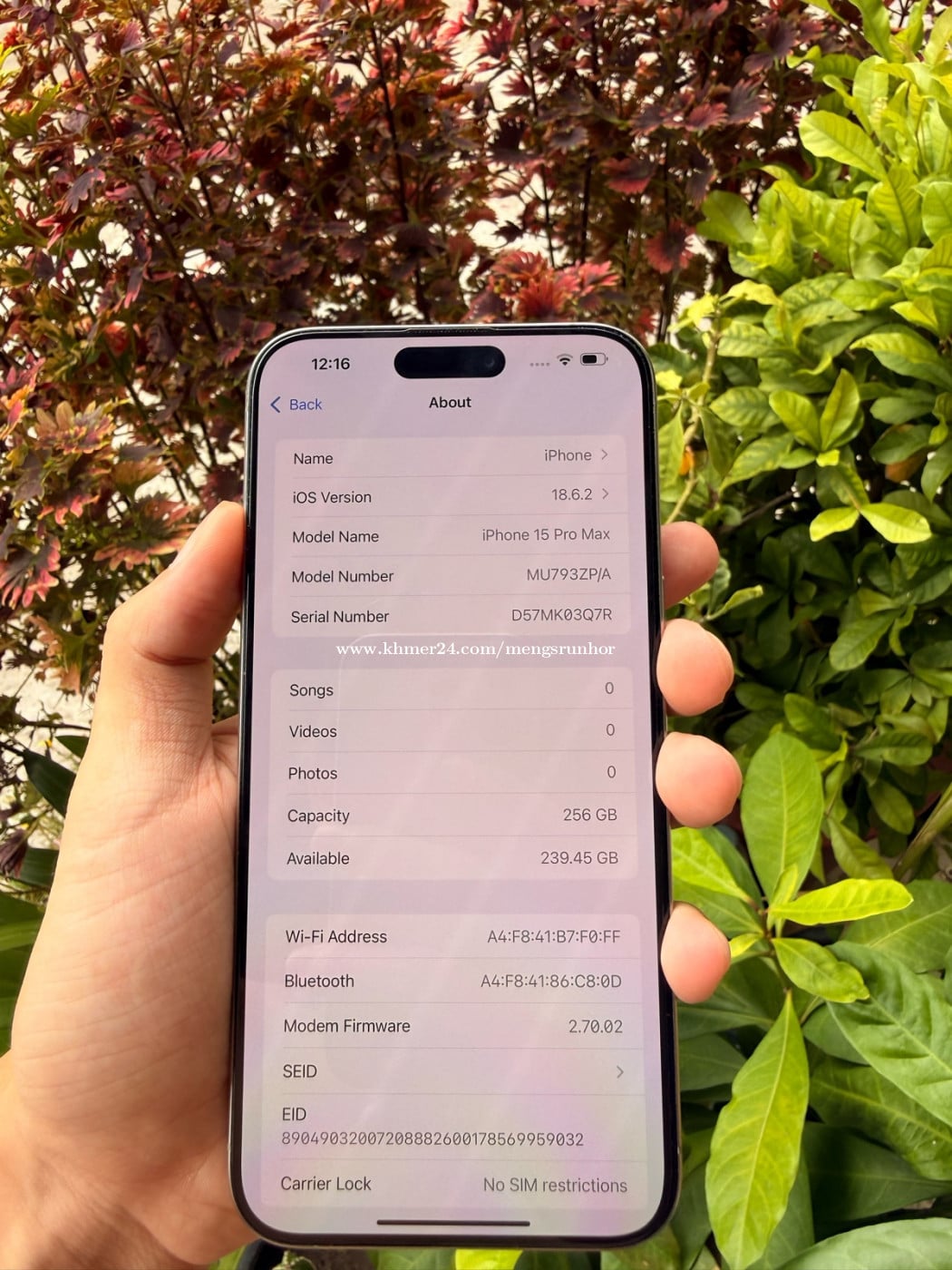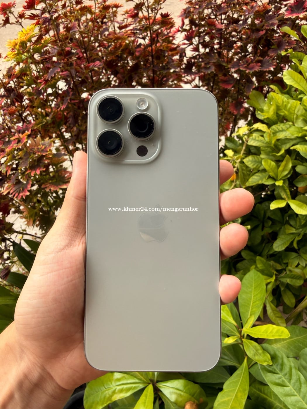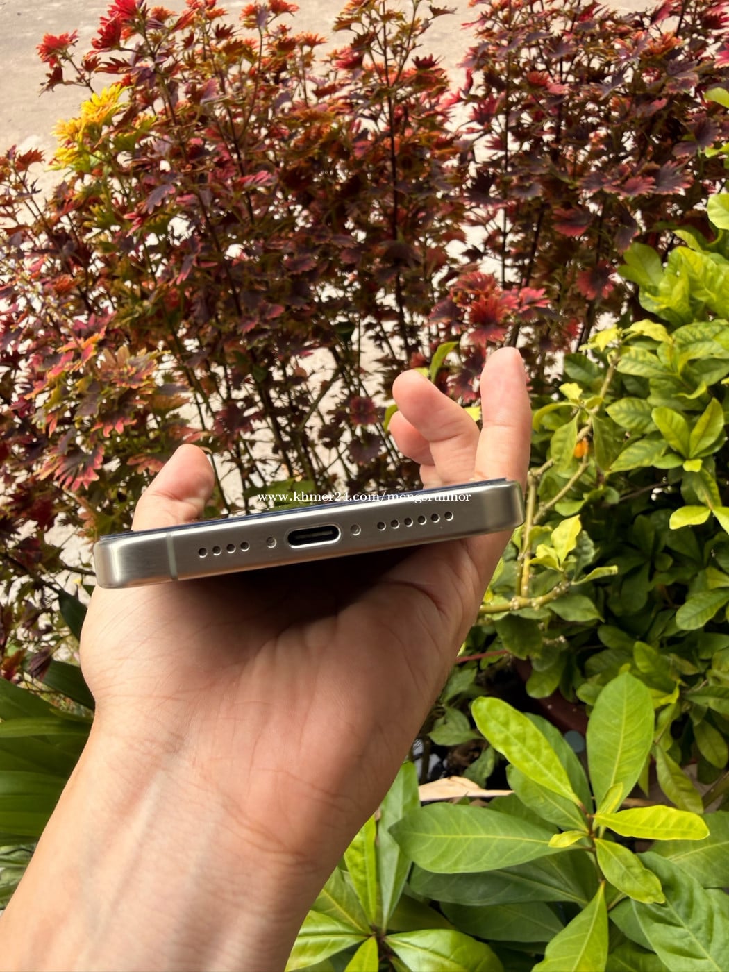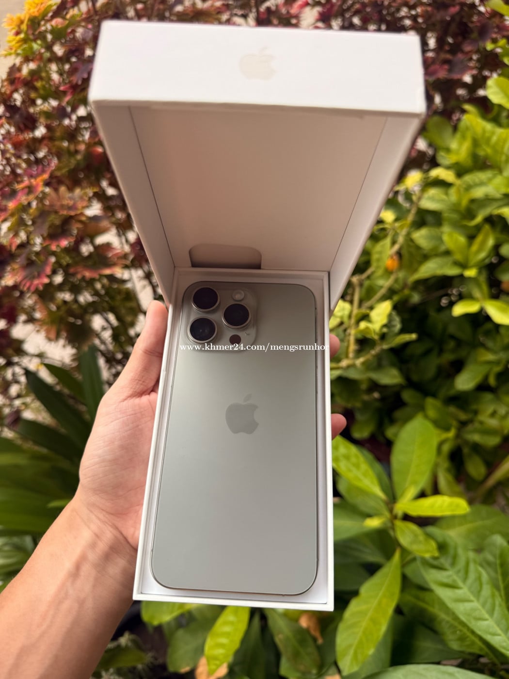 លក់Iphone 15 Pro max 256GB 99% របស់ប្រើខ្លួនឯង ព័ណ៌ Natural Titanium សំណុំហ្ស៊ីន មានប្រអប់ ឆ្នាំងសាកហ្ស៊ីន