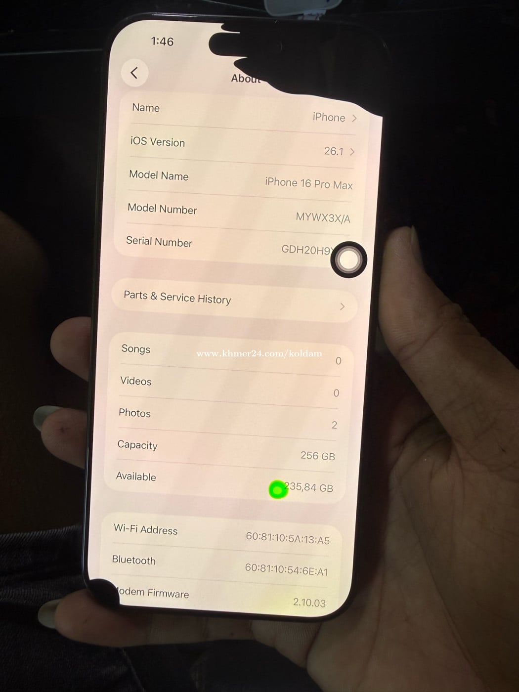 លក់16 promax 256g pass ប្រេីwifi អាចភ្ចាប់ទៅទូរសព្ទ័បានម៉ាអែប