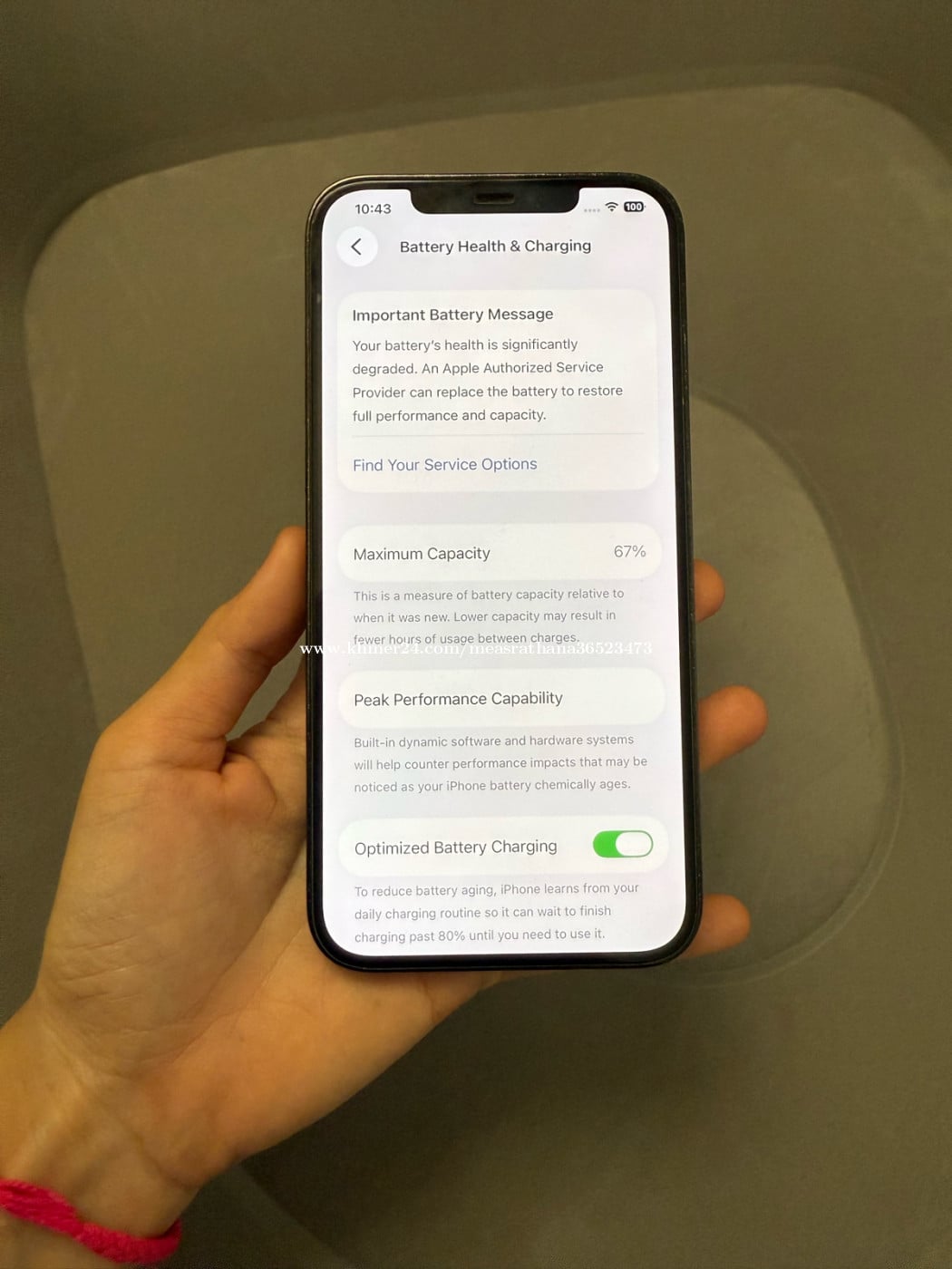 ទូរស័ព្ទប្រើផ្ទាល់ មិនធ្លាប់ផ្លាស់ប្ដូរ ឬជួលជុល ហើយក៏គ្មានបញ្ហាអ្វីដែរ លក់ដូរសេរី ថ្មនៅកាន់ល្អ អេក្រង់សុីន តួសឹកតិចតួចប្រហែល 10% មកមើលសិនបាន