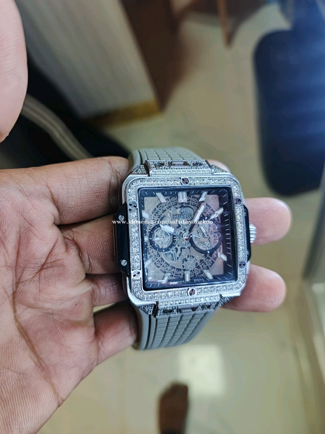 នាឡិកាម៉ាក់ HUBLOT ប្រភេទអូតូប្រើថ្ម លក់ខាតនៅថ្មី 90% ធ្វើអំពីដែកធានាម អត់ច្រេះអត់ចូលទឹកម៉ាស៊ីនដើរម៉ាឆ្ងាញ់ធានាយកទៅប្រើអត់ខាតលុយទេ
