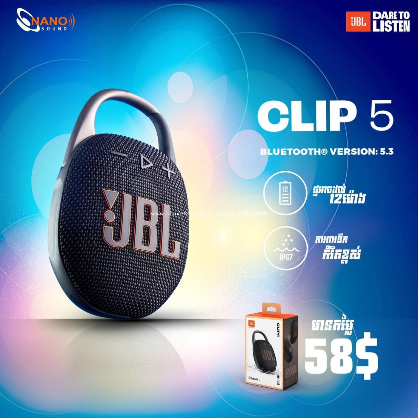 លក់កូនបាស់ JBL Clips 5 នៅថ្មី ហើយថ្មកាន់