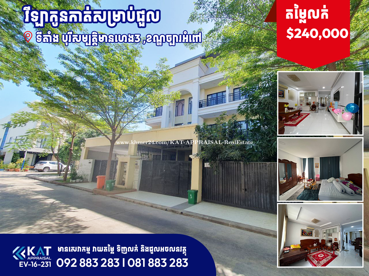 វិឡាកូនកាត់សម្រាប់លក់ | Linkhouse For Sale -តម្លៃលក់ | Sale Price: $240,000 Negotiable -ប្លង់រឹង | Hard Title Transfer -ទំហំផ្ទះ | House size: 5.2m × 12.9m -បន្ទប់គេង | Bedroom: 4 -បន្ទប់ទឹក | Bathroom: 5 -ចំនួនជាន់ | Floor status: 2.5 -សំភារៈពេញ | Furniture have full -ចំណាំ បច្ចុប្បន្នកំពុងជួលអោយភ្ញៀវបានចំណូល 600$ /ខែ -ទីតាំង/ Location: នៅបុរី សម្បត្តិមានហេង3 សង្កាត់និរោធ ,ខណ្ឌច្បារអំពៅ , រាជធានីភ្នំពេញ។ Tel: 092883xxxClick To Call l 081883xxxClick To Call Telegram Chat : https://t.me/katappraisalsupport Telegram Channel : https://t.me/KAT_APPRAISAL