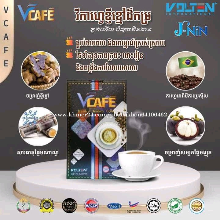 កាហ្វេខ្ញីខ្មៅផ្សំពីរុក្ខឱសថ៤មុខសុទ្ធតែចម្រាញ់ ១.ចម្រាញ់គ្រាប់កាហ្វេអារ៉ាប់ប៊ីកាប្រេសុីល ២.ចម្រាញ់ខ្ញៅខ្មៅ ៣.ចម្រាញ់សំបកម្ឃុត ៤.ចម្រាញ់អំពៅខ្មៅ ជាភេសជ្ជៈផ្ដល់ថាមពល សម្រួលប្រព័ន្ធរំលាយអាហារ សំរានលក់ស្រួល រំលាយជាតិពុលក្នុងខ្លួន បង្ការការពារជម្ងឺមិនឆ្លង និងមានរស់ជាតិឆ្ងាញ់បំភ្លេចមិនបានហើយទទួលស្គាល់ដោយស្ថាប័នសុខភាពពិភពលោក ព្រមទាំងក្រសួងសុខាភិបាលកម្ពុជា។