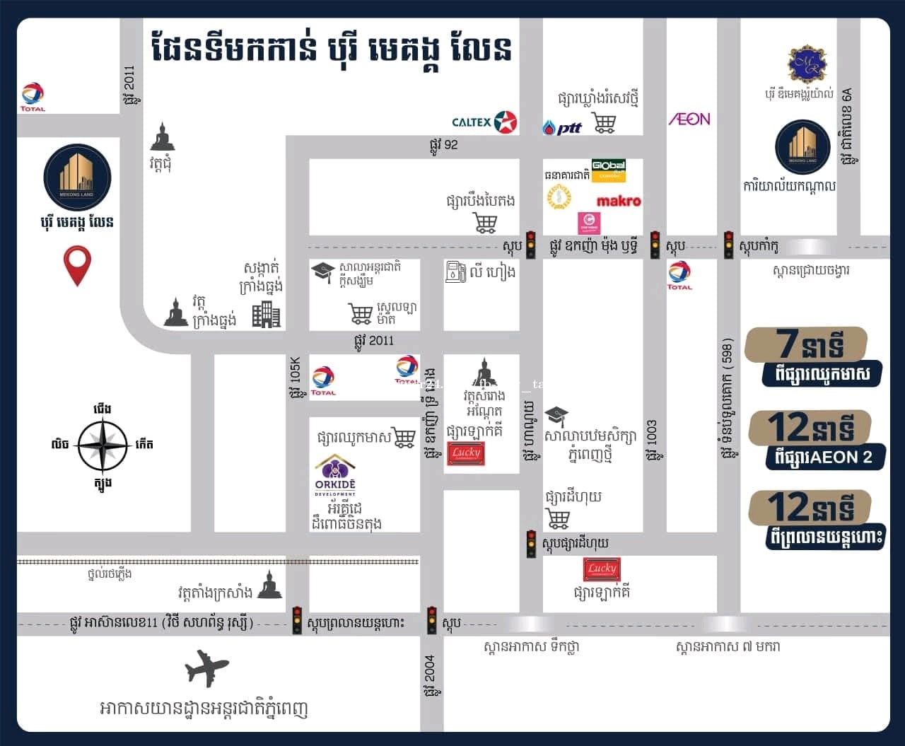 Location: ទីតាំង នៅក្នុង បូរី ហ្គោលឌិន អាវិននូ មេគង្គ ឡេ នៅជិត វត្តក្រាំងធ្នង់ Krang Thnong, Saensokh, Phnom Penh