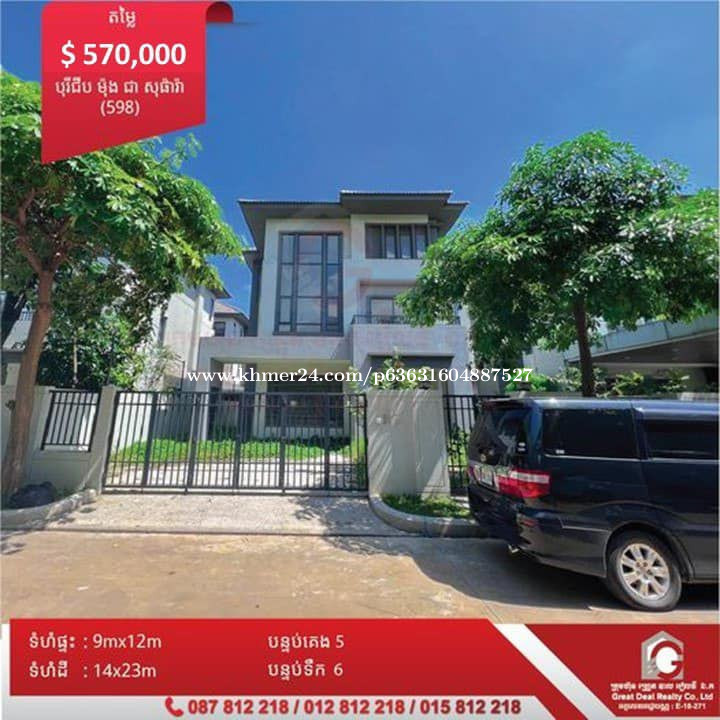📣 វីទ្បាឃ្វីន អេ សម្រាប់លក់ (Villa Queen A) 📍 ទីតាំង: ស្ថិតក្នុង ជីប ម៉ុង ជា សុផ៉ារ៉ា (Chip Mong Parkland 598) 💲 តម្លៃ: 570.000$ (ចរចា) ▶️ទំហំផ្ទះ: 9mx12m ▶️ទំហំដី: 14mx23m ▶️បន្ទប់គេង5 បន្ទប់ទឹក6 ▶️ប្លង់បុរី ‼️ លក្ខណៈពិសេស - ផ្ទះមានទីតាំងល្អសំរាប់ការរស់នៅបែបស៊ីវីល័យ សុវត្ថិភាពខ្ពស់ និងមានផាសុខភាព។ - ទីតាំងស្ថិតនៅក្បែរផ្សារ Aeon2,ផ្សារ Macro, សាលារៀន និងមន្ទីរពេទ្យ។ ☎️សម្រាប់ព័ត៌មានបន្ថែម៖ 012812xxxClick To Call/ 015812xxxClick To Call/ 087812xxxClick To Call PropertyID0527