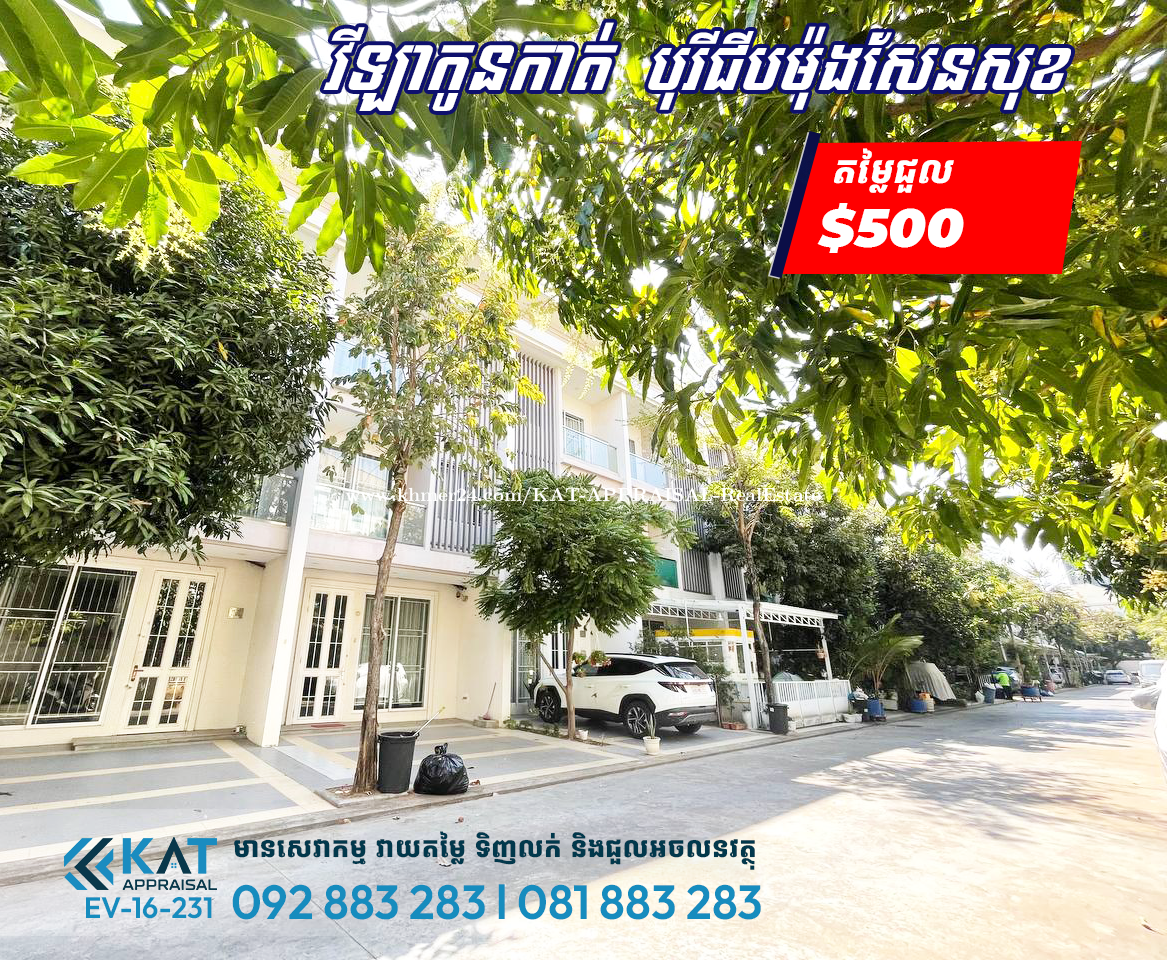 វីឡាកូនកាត់សម្រាប់ជួល l Links House For Rent -តម្លៃជួល l Rent Price : $ 500 -ទំហំដី l Land Size: 5mx13.5m -ទំហំផ្ទះ l House Size : 5mx7.2m -បន្ទប់គេងl Bedroom : 3 -បន្ទប់ទឹក l Bathroom : 3 -មានសំភារះមានម៉ាសុីនត្រជាក់ នឹងវំាងនន -ទីតាំង/ Location : បុរីជីបម៉ុងសែនសុខ សង្កាត់ភ្នំពេញថ្មី ខណ្ឌសែនសុខ Tel: 092883xxxClick To Call l 081883xxxClick To Call Telegram Chat : https://t.me/katappraisalsupport Telegram Channel : https://t.me/KAT_APPRAISAL