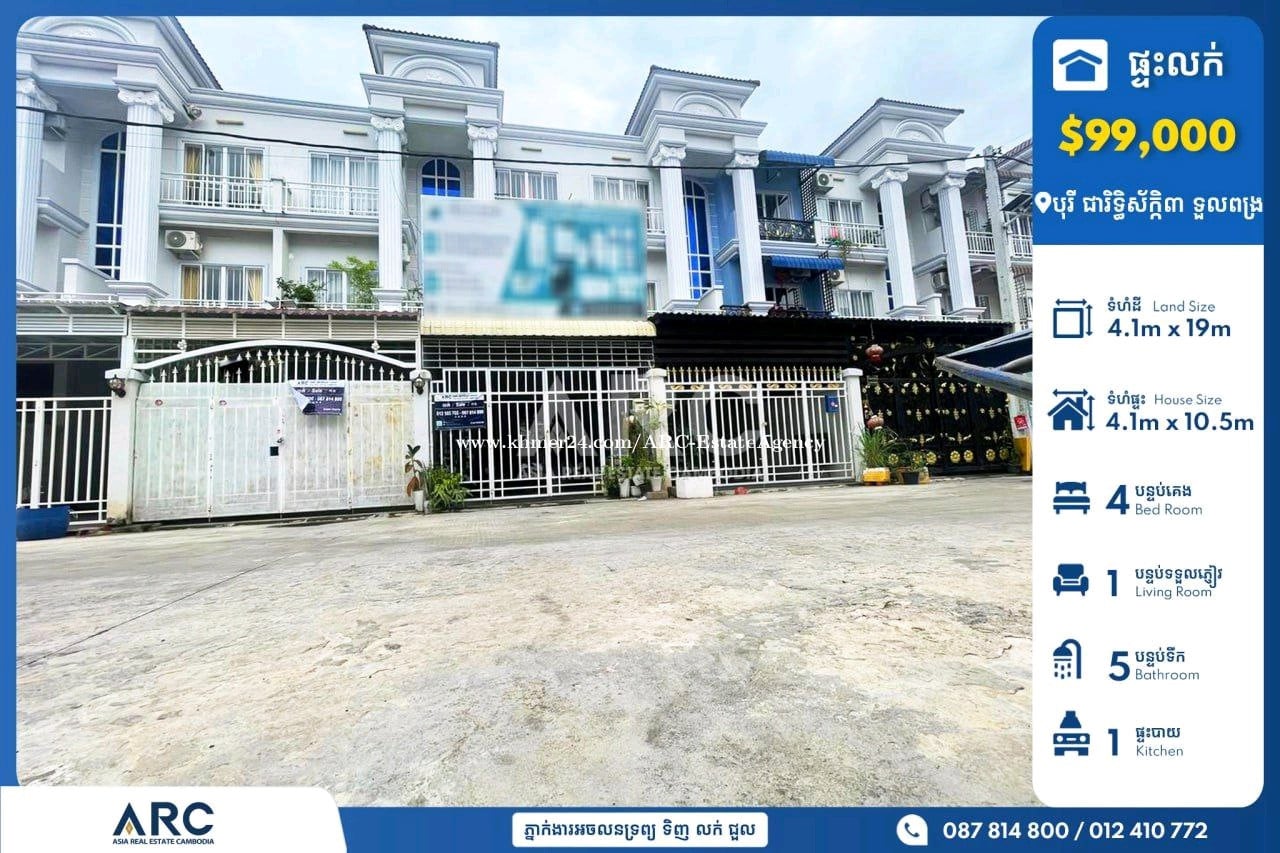 🏘️ វីឡាកូនកាត់(Link House)សម្រាប់លក់បន្ទាន់ខ្លាំងនៅបុរី ជារិទ្ធិស័ក្កិ៣ (ទួលពង្រ) 👉តម្លៃ: 99,000$(ចរចា) *ទំហំផ្ទះ House Size: 4.1m x 10.5m *ទំហំដី Land Size: 4.1m x 19m *បន្ទប់គេង Bedroom: 4 *បន្ទប់ទឹក Bathroom: 5 👉ផ្ទះថ្មីស្អាត ៣នាទីពីផ្សារទួលពង្រ សាកលវិទ្យាល័យប៊ែលធី មានសន្តិសុខ២៤ម៉ោង មានផ្សារ សាលារៀន មន្ទីរពេទ្យ..... 📍 នៅសង្កាត់ចោមចៅ ខណ្ឌពោធិ៍សែនជ័យ រាជធានីភ្នំពេញ Tel: 087814xxxClick To Call/ 012410xxxClick To Call/ 070410xxxClick To Call Telegram http://t.me/@Vebol087 Channel Telegram https://t.me/ARCDangkorVebol Channel telegram: https://t.me/AsiaRealEstateCambodia #ផ្ទះលក់បន្ទាន់ខ្លាំង #villaforsale #KhanDangkao #khanmeanchey 👉អាជ្ញាប័ណ្ណ:EV-08-069