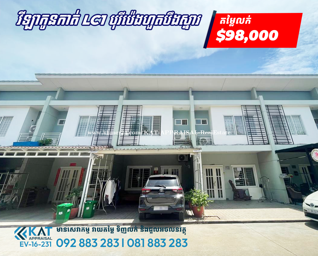 វីឡាកូនកាត់សម្រាប់លក់ l Links House LC1 For Sale -តម្លៃលក់ l Sale price : $98,000 -បន្ទប់គេង l Bedroom : 2 -បន្ទប់ទឹក l Bathroom : 3 -បែរទិសត្បូង l Face to South -ប្លង់បុរី - ទីតាំង/ Location : សង្កាត់និរោធន៍ ខណ្ឌច្បារអំពៅ រាជធានីភ្នំពេញ Tel: 092883xxxClick To Call l 081883xxxClick To Call Telegram Chat : https://t.me/katappraisalsupport Telegram Channel : https://t.me/KAT_APPRAISAL