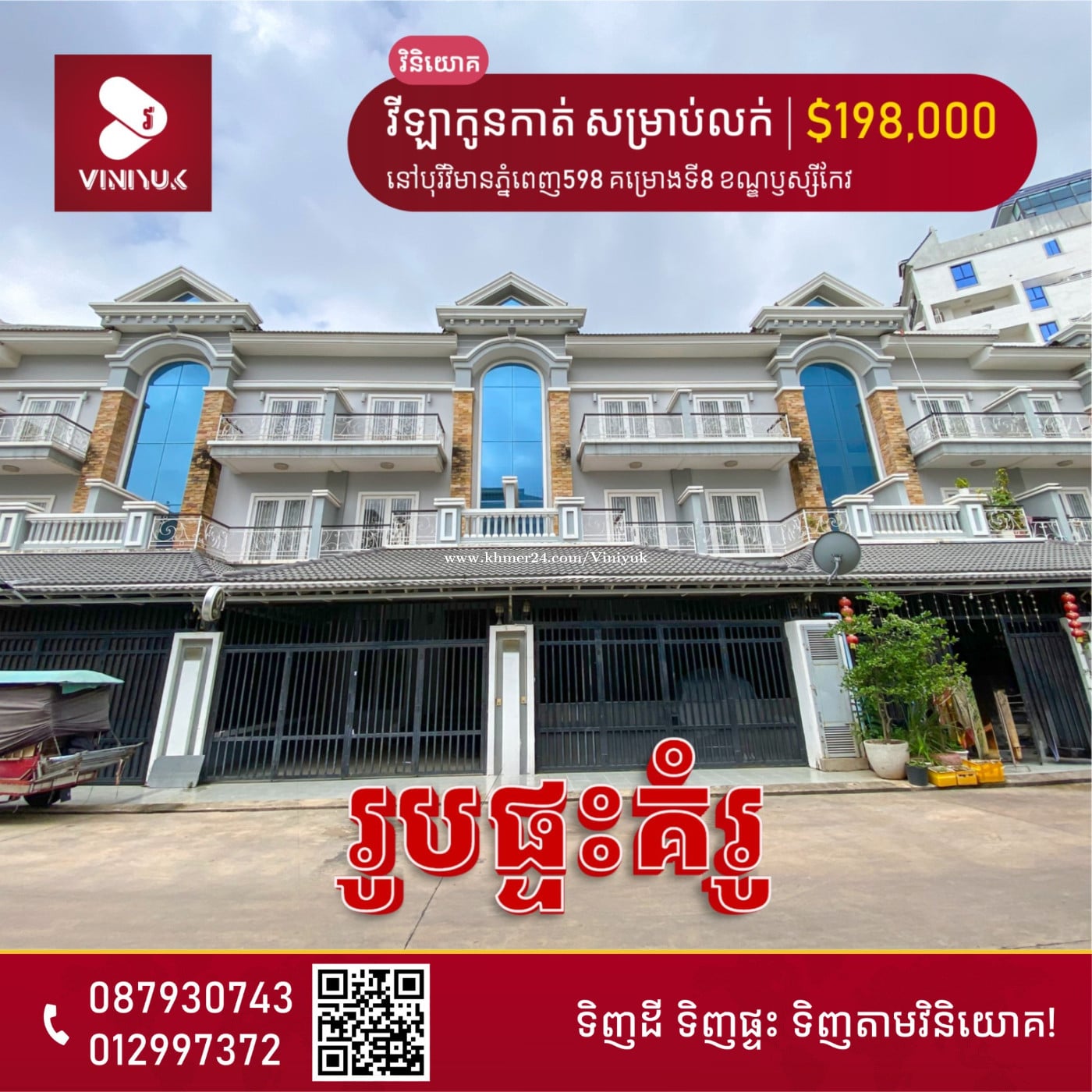 🏡វីឡាកូនកាត់ សម្រាប់លក់!! 📍ទីតាំង៖ នៅបុរីវិមានភ្នំពេញ598 គម្រោងទី8 ខណ្ឌឫស្សីកែវ - តម្លៃលក់ : $198,000 ចរចា - តម្លៃជួល : $600/ខែ ចរចា - ទំហំដី : 5.5m x 21m - ទំហំផ្ទះ : 5.5m x 12.6m - បន្ទប់គេង 4, បន្ទប់ទឹក 5 - ប្លង់ត្រឹមបុរី - ទិសបែរជើង - លេខអាជ្ញាប័ណ្ណ : E-22-404