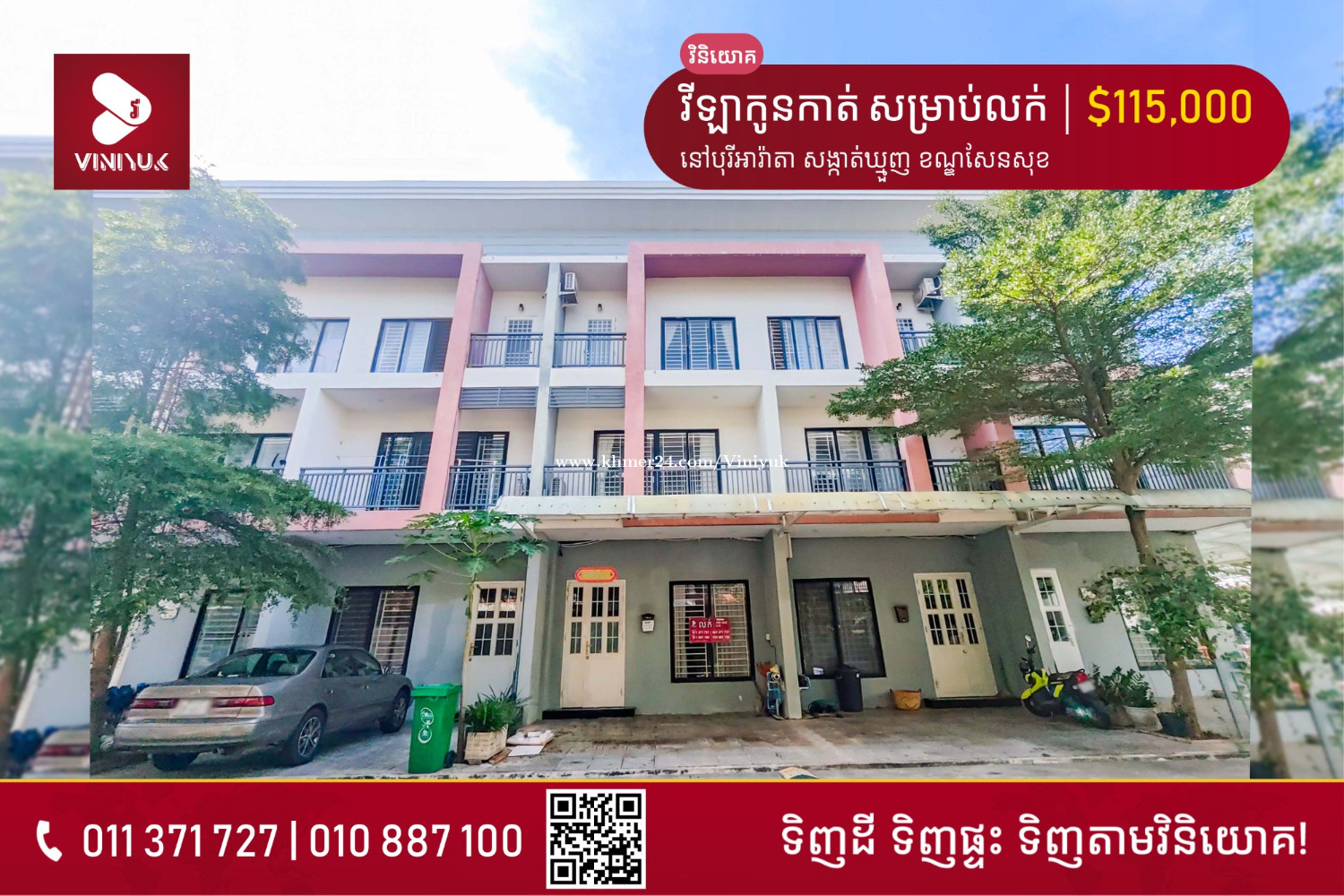 🏡វីឡាកូនកាត់ សម្រាប់លក់!! 📍ទីតាំង៖ នៅបុរីអារ៉ាតា សង្កាត់ឃ្មួញ ខណ្ឌសែនសុខ រាជធានីភ្នំពេញ - តម្លៃលក់: $115,000 ចរចា - ទំហំដី: 5m x14 m - ទំហំផ្ទះ: 5m x 8m - បន្ទប់គេង3, បន្ទប់ទឹក3 - សម្ភារៈមិនមាន - ទិស ជើង - ប្លង់ រឹង - លេខអាជ្ញាប័ណ្ណ : E-22-404