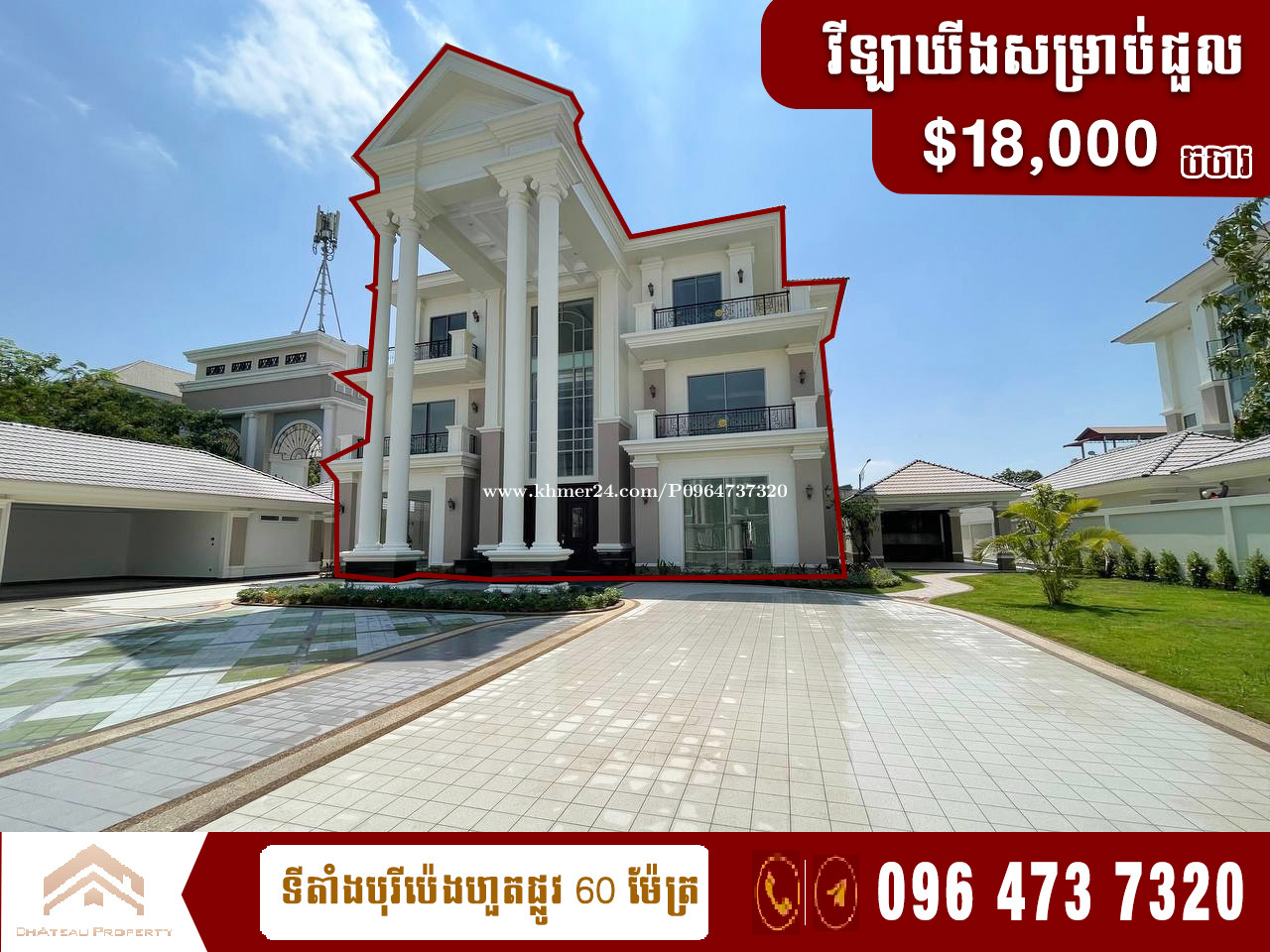 *តម្លៃជួល | Rental Price: $18,000 (ចរចា | Negotiable) *ទំហំដី | Land size: 39.2m x 40m *ទំហំផ្ទះ | House size: 21m x 17.5m *ជាន់ | Floor: 3 *បន្ទប់គេង | Bedroom: 7 *បន្ទប់ទឹក | Bathroom: 8 *Living Room | បន្ទប់ទទួលភ្ញៀវ: 1 *ផ្ទះបាយ | Kitchen: 1 *បន្ទប់អ្នកបម្រើ | Maid Room: 2 *បន្ទប់ធ្វើលំហាត់ប្រាណ | Gym Room: 1 *ចំណត | Parking space: 4 *ទីតាំង | Location: បុរីប៉េងហួតផ្លូវ 60 ម៉ែត្រ __________________________ Property Code: (9072)