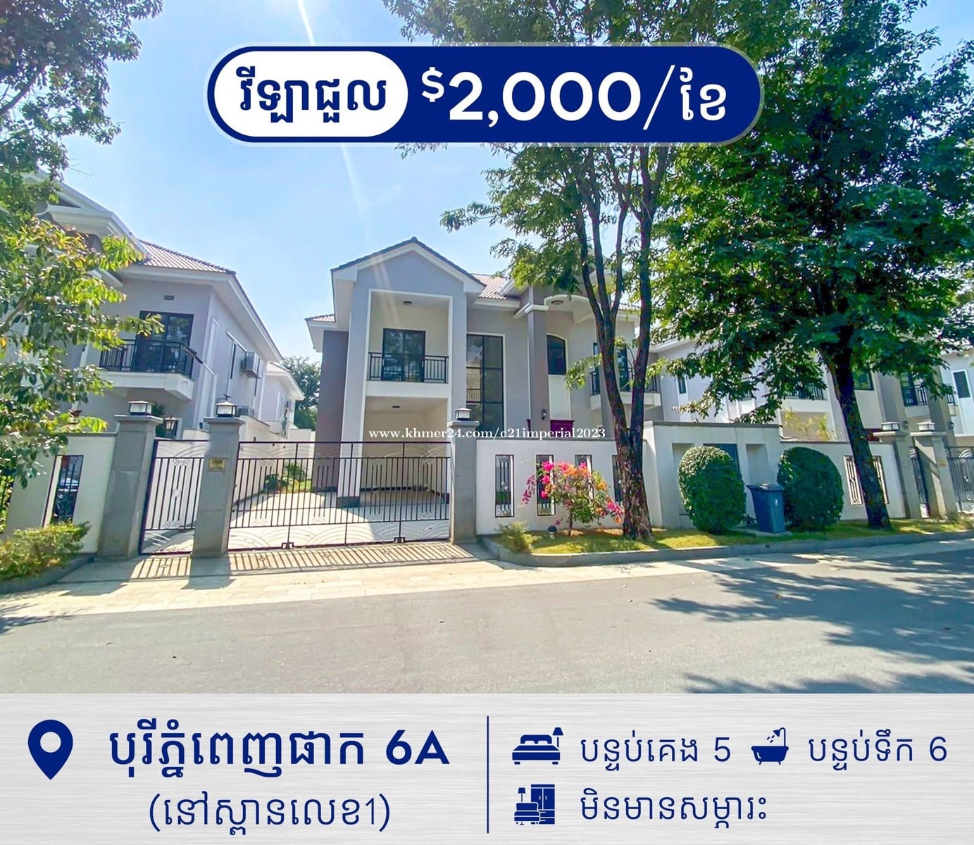🏡#វីឡាឃ្វីនសម្រាប់ជួលនៅក្នុងបុរីភ្នំពេញផាក6A -តម្លៃជួល 2,000$ ចរចា -ទំហំដី: 16.8m x 25m -ទំហំផ្ទះ: 13m x 16m -បន្ទប់គេង 5 -បន្ទប់ទឹក 6 -ផ្ទះថ្មី -សម្ភារះគ្មាន ☎️☎️សម្រាប់ព័ត៌មានលំអិត និងរូបភាពបន្ថែមសូមទំនាក់ទំនងៈ 📲 𝐓𝐞𝐥𝐞𝐠𝐫𝐚𝐦: https://t.me/sopheakthorn 📲 𝐓𝐞𝐥𝐞𝐩𝐡𝐨𝐧𝐞: 099557xxxClick To Call / 0962731xxxClick To Call សូមអគុណ! #វីឡាព្រីនជួលនៅ6A