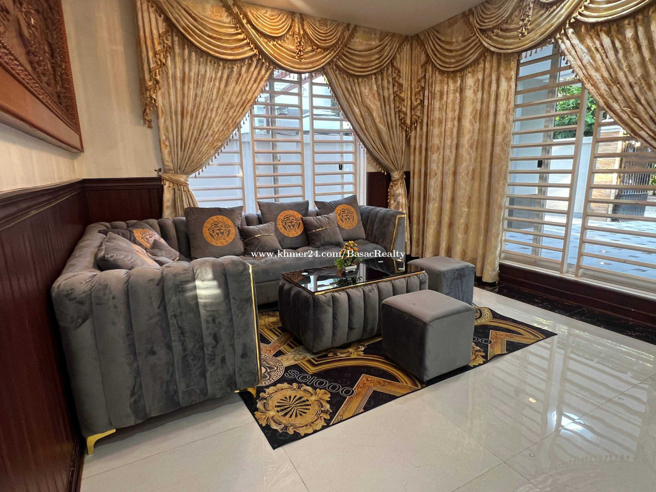 វីឡាឃ្វីនសម្រាប់ជួល នៅក្នុងបុរីប៉េងហួតបឹងស្នោរ | Queen Villa for Rent in Borey Penghuoth Boeung Snor * តម្លៃជួល | Rent Price: $5,000/month (ចរចា) * ទំហំផ្ទះ | House Size: 12m x 12m * បន្ទប់គេង | Bedroom: 05 * បន្ទប់ទឹក | Bathroom: 06 * បន្ទប់ទទួលភ្ញៀវ | Living Room: 01 * ផ្ទះបាយ | Kitchen: 01 * បែរមុខទៅទិសខាងត្បូង | Facing South