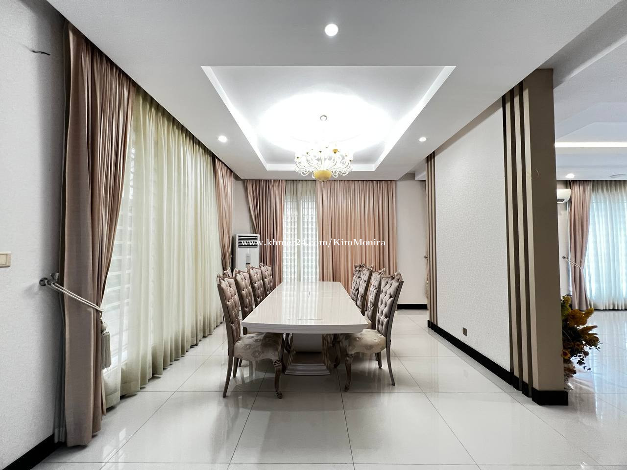 🏡វីឡាឃ្វីនសម្រាប់ជួល | Villa Queen Rent 💲តម្លៃជួល| Price Rent : $5,500 ចរចា - សម្ភារ: | Furniture : Fully Furnished - ទំហំផ្ទះ | House size : 12m x 12m - ទំហំដី | Land size : 17.45m x 23m - បន្ទប់គេង | Bedroom : 7 - បន្ទប់ទឹក | Bathroom : 8 - ផ្ទះបាយ | Kitchen : 1 - បន្ទប់ទទួលភ្ញៀវ | Livingroom : 1 - ផ្ទះបែរទៅខាងជើង| Facing to North 📍ទីតាំងស្ថិតនៅក្នុង បុរីប៉េងហួតបឹងស្នោរ គម្រោងមឺហ្គឺរៀន សង្កាត់និរោធ ខណ្ឌច្បារអំពៅ រាជធានីភ្នំពេញ | Location in Borey Peng Huoth Beoung Snor Phnom Penh. 📞 Smart : 098890xxxClick To Call 📞 Cellcard : 095444xxxClick To Call 📱 Telegram : 098890xxxClick To Call
