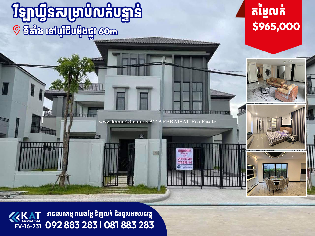 វីឡាឃ្វីនសម្រាប់លក់បន្ទាន់ l Queen For Sale Chip Mong 60m -តម្លៃ l Price : $965,000 -ទំហំដី l Land Size: 20mx23m -ទំហំផ្ទះ l House Size : 13m X 13m -បន្ទប់គេង l Badroom : 6 ; បន្ទប់ទឹក l Bathroom : 7 -ទីតាំង l Location : ស្ថិតនៅបុរីជីបម៉ុងផ្លូវ 60m Tel: 092883xxxClick To Call l 081883xxxClick To Call Telegram Chat : https://t.me/katappraisalsupport Telegram Channel : https://t.me/KAT_APPRAISAL