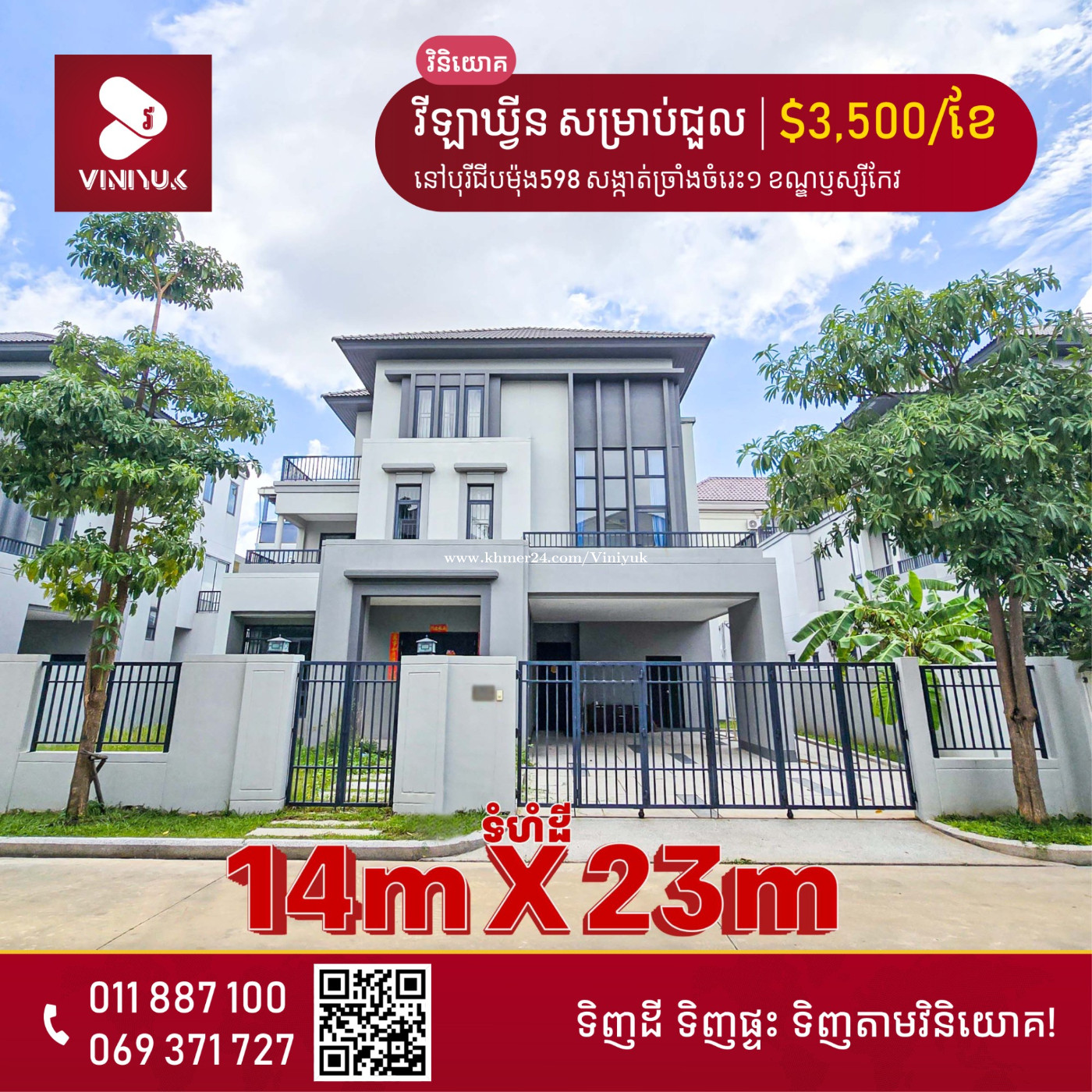 🏡វីឡាឃ្វីន សម្រាប់ជួល!! 📍ទីតាំង ៖ នៅបុរីជីបម៉ុង598 សង្កាត់ច្រាំងចំរេះ១ ខណ្ឌឫស្សីកែវ រាជធានីភ្នំពេញ - តម្លៃ ជួល : $3,500/ខែ ចរចា - ទំហំដី : 14m x 23m - ទំហំផ្ទះ : 9m x 12m - បន្ទប់គេង 6, បន្ទប់ទឹក 7 - ផ្ទះបាយ , កន្លែងទទួលភ្ញៀវ 1 - ទិសបែរខាងជើង - មានសំរាប់មួយចំនួន - លេខអាជ្ញាប័ណ្ណ : 𝐄-𝟐𝟐-𝟒𝟎𝟒
