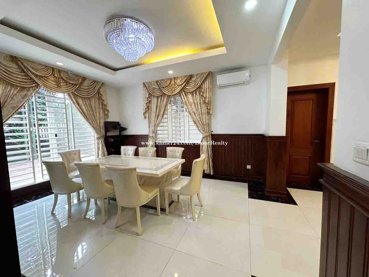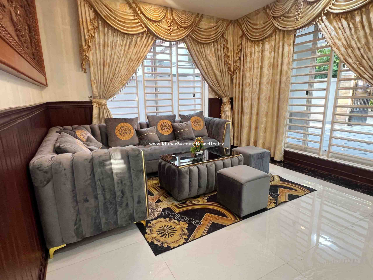 វីឡាឃ្វីនសម្រាប់ជួល នៅក្នុងបុរីប៉េងហួតបឹងស្នោរ | Queen Villa for Rent in Borey Penghouth Boeung Snor * តម្លៃជួល | Rent Price: $6,000/month (ចរចា) * ទំហំផ្ទះ | House Size: 12m x 12m * បន្ទប់គេង | Bedroom: 05 * បន្ទប់ទឹក | Bathroom: 06 * បន្ទប់ទទួលភ្ញៀវ | Living Room: 01 * ផ្ទះបាយ | Kitchen: 01