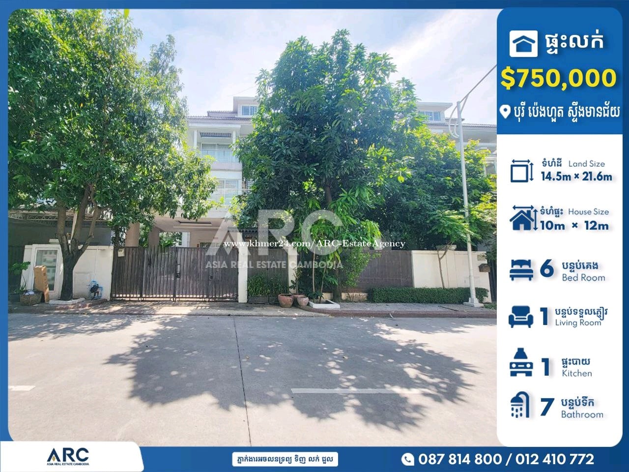 🏘️ វីឡាឃ្វីន(Queen Villa) សម្រាប់លក់បន្ទាន់នៅបុរី ប៉េងហួត (ស្ទឹងមានជ័យ ) *តម្លៃ: 750,000$(ចរចា) *ទំហំផ្ទះ Size House: 10m x 12m *ទំហំដី Size Land: 14.5m x 21.6m *បន្ទប់គេង Bedroom: 6 *បន្ទប់ទឹក Bathroom: 7 👉ផ្ទេរកម្មសិទ្ធិ: (ប្លង់រឹងជូន) 👉ផ្ទះថ្មីស្អាត ៣នាទីពីផ្សារទំនើបស្ទឹងមានជ័យថ្មី មានសន្តិសុខ២៤ម៉ោង មានផាសុខភាព សុវត្ថិភាព..... 📍 នៅសង្កាត់ស្ទឹងមានជ័យ ខណ្ឌមានជ័យ រាជធានីភ្នំពេញ Tel: 087814xxxClick To Call / 092821xxxClick To Call / 067477xxxClick To Call Telegram http://t.me/@Vebol087 Channel Telegram https://t.me/ARCDangkorVebol Channel telegram: https://t.me/AsiaRealEstateCambodia #ផ្ទះលក់បន្ទាន់ខ្លាំង #villaforsale #KhanDangkao #khanmeanchey 👉អាជ្ញាប័ណ្ណ: EV-08-069