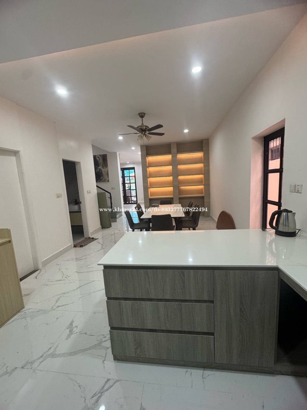 វីឡាទោលដេគ័រហើយរួចរាល់ ទីតាំងនៅខាងក្រោយធនាគារABAតាខ្មៅ ខាងមុខសល់ដី10x10អាចបើកជាកាហ្វេ open space បាន សល់ខាងមុខធំទូលាយ និងមានដើមឈើធំស្រាប់ ទំហំដី 10x31 ទំហំផ្ទះ 9x12 បន្ទប់គេង4 បន្ទប់ទឹក 5 Office 1 បន្ទប់ទទួលភ្ញៀវ ១ ចង្ក្រានបាយ ១ ខាងលើសល់វេរ៉ង់ដាធំទូលាយ បន្ទប់គេង+បន្ទប់ទឹក (អ្នកនៅជាមួយ) រោងដាក់ឡានបាន3 ងាយស្រួលធ្វើដំណើរទៅព្រលានយន្តហោះថ្មី