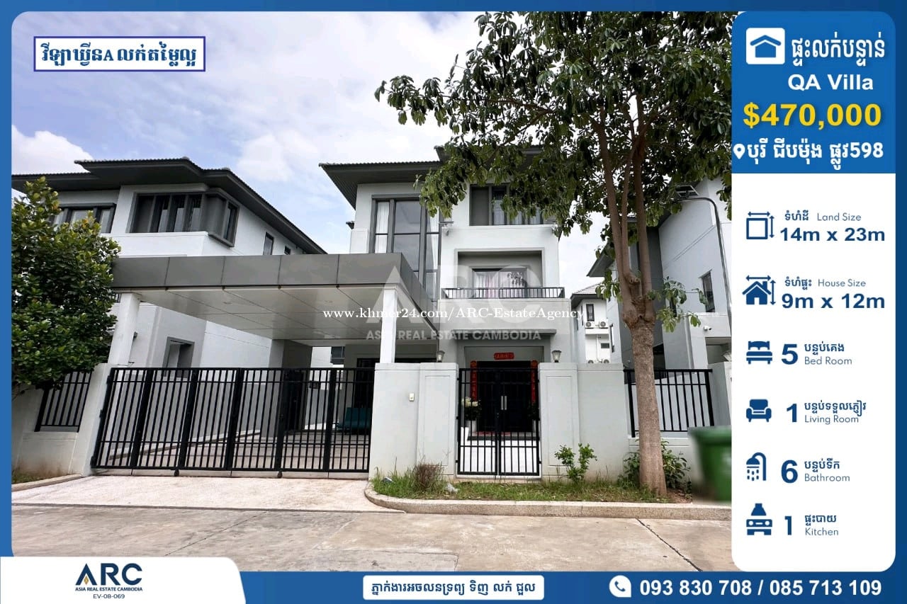 #Queen A Villa For Sale at Borey Chip Mong Park Land 598 #វីឡាឃ្វីនអេដាក់លក់បន្ទាន់នៅក្នុងបុរី ជីបម៉ុង 598 ជិតផ្សារទំនេីបអុីអន២ 🔹 តម្លៃលក់ក្រោមទីផ្សារ : $470,000 (ចរចាម្ចាស់ផ្ទាល់) 🔹 កាត់ឈ្មោះប្លង់រឹងជូន 🔹 ទំហំដី : 14m x 23m 🔹 ទំហំផ្ទះ : 9m x 12m 🔹 បន្ទប់គេង : 05 បន្ទប់ទឹក : 06 📍ទីតាំងត្រឹមតែ07នាទីពីផ្សារទំនើប AEON2 Makro សង្កាត់ច្រាំងចំរេះទី២ ,ខណ្ឌឬស្សីកែវ ,រាជធានីភ្នំពេញ សម្រាប់ពត៏មានលម្អិតសូមទំនាក់ទំនងមកក្រុមការងារ 085713xxxClick To Call / 093830xxxClick To Call / 0978899xxxClick To Call Chat to Telegram Agent https://t.me/sonsela14 Channel Telegram https://t.me/ARCKhanResseykeo 👉 អាជ្ញាប័ណ្ណ៖ EV-08-069