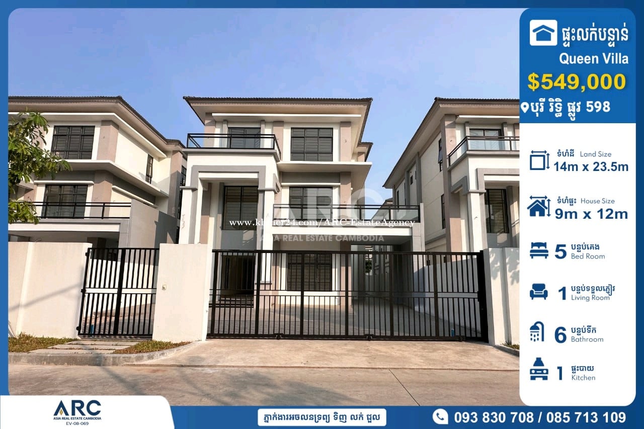 #Queen Villa For Sale at Borey Rith 598 #វីឡាឃ្វីនដាក់លក់នៅក្នុងបុរី រិទ្ធិ ផ្លូវ598 ជិតផ្សារទំនេីបអុីអន២ 🔹 តម្លៃលក់ : $549,000 ( ចរចាម្ចាស់ផ្ទាល់ ) 🔹 កាត់ឈ្មោះប្លង់រឹងជូន 🔹 ទំហំដី : 14m x 23.5m 🔹 ទំហំផ្ទះ : 9m x 12m 🔹 បន្ទប់គេង : 05 បន្ទប់ទឹក : 06 📍ទីតាំងត្រឹមតែ08នាទីពីផ្សារទំនើប AEON2 Makro ,សង្កាត់ច្រាំងចំរេះទី១ ,ខណ្ឌឬស្សីកែវ ,រាជធានីភ្នំពេញ សម្រាប់ពត៏មានលម្អិតសូមទំនាក់ទំនងមកក្រុមការងារ 085713xxxClick To Call / 093830xxxClick To Call / 0978899xxxClick To Call Chat to Telegram Agent https://t.me/sonsela14 Channel Telegram https://t.me/ARCKhanResseykeo 👉 អាជ្ញាប័ណ្ណ៖ EV-08-069