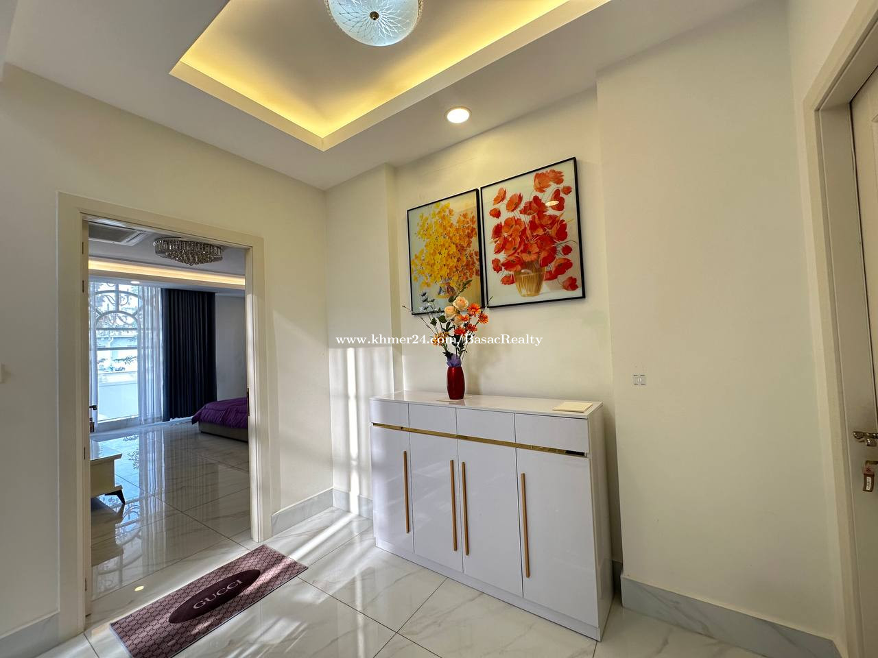 វីឡាព្រីនសម្រាប់ជួល នៅបុរីប៉េងហួតបឹងស្នោរ | Prince Villa for Rent in Borey Peng Huoth Boeung Snor * តម្លៃជួល l Rent Price: $5,500/month (ចរចា) * ទំហំដី | Land Size: 18m x 25m * ទំហំផ្ទះ | House Size: 12m x 19m * បន្ទប់គេង | Bedroom: 5+2 * បន្ទប់ទឹក | Bathroom: 07 * បន្ទប់ទទួលភ្ញៀវ | Living Room: 01 * ផ្ទះបាយ | Kitchen: 01 * បែរមុខទៅទិសខាងជើង | Facing North