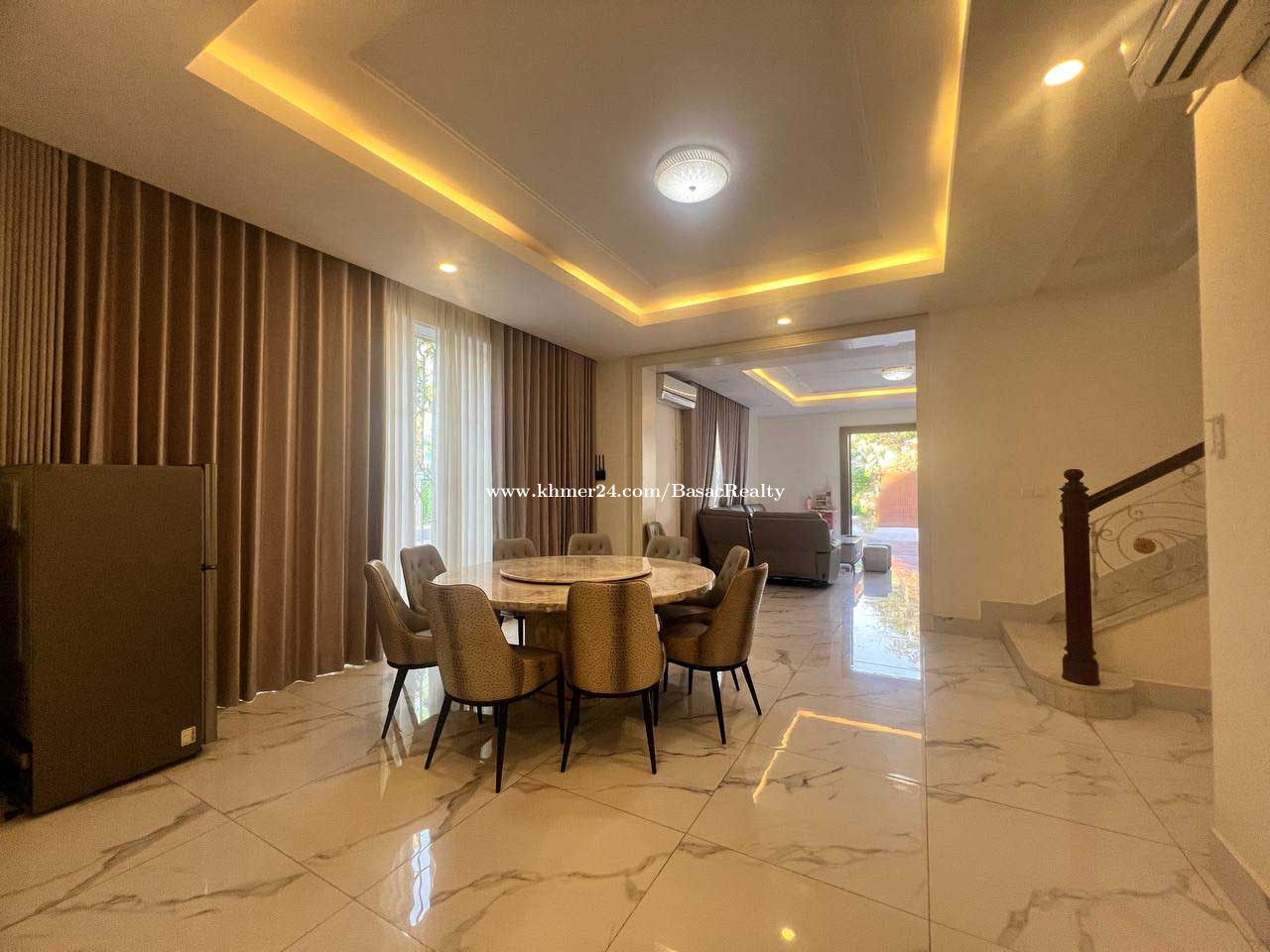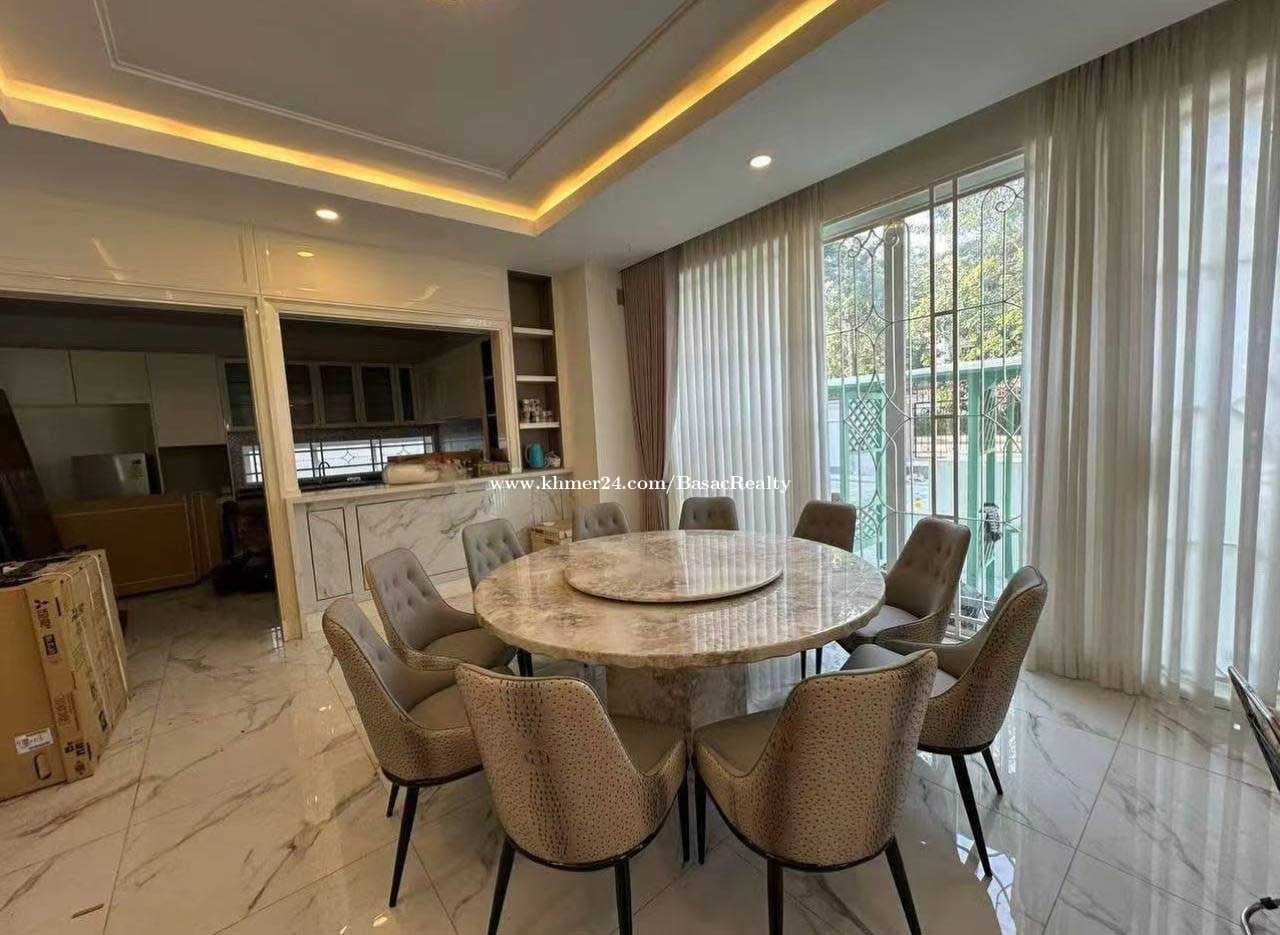 វីឡាព្រីនសម្រាប់ជួល នៅបុរីប៉េងហ៊ួត បឹងស្នោរ | Prince Villa For Rent in Borey Penghout Boeung Snor - តម្លៃជួល | Sale Price: $7,500/month - ទំហំផ្ទះ | House Size: 12m x 19m - ទំហំដី l Land Size: 25.5m x 30.4m - បន្ទប់គេង | Bedroom: 05 - បន្ទប់ទឹក | Bathroom: 06 - បែរទិសខាងកើត | Facing East - សម្ភារៈពេញ | Fully furnished - បន្ទប់ទទួលភ្ញៀវ | Living Room: 01 - ផ្ទះបាយ | Kitchen: 01 - ចំណតឡាន | Parking: 3-4