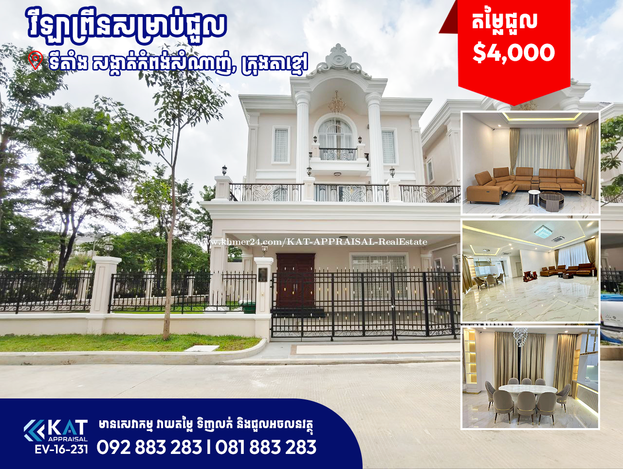 វីឡាព្រីនសម្រាប់ជួល | Prince Villa For Rent - ទីតាំង៖ បុរី ML Tiara ក្រុងតាខ្មៅ - តម្លៃ | Price: $4,000 - ទំហំដីធំ 411m² ដីកែងទូលាយ - ទំហំផ្ទះ | House Size: 9m x 12m - បន្ទប់គេង 6 | បន្ទប់ទឹក 7 - កំពស់ ៣ជាន់ | 3 Floors - មានសម្ភារៈពេញ ម៉ាស៊ីនត្រជាក់7គ្រឿង សាឡុង តុបាយ ទីតាំង/ Locaiton: សង្កាត់កំពង់សំណាញ់, ក្រុងតាខ្មៅ, ខេត្ដកណ្ដាល ។ Tel: 092883xxxClick To Call l 081883xxxClick To Call Telegram Chat : https://t.me/katappraisalsupport Telegram Channel : https://t.me/KAT_APPRAISAL