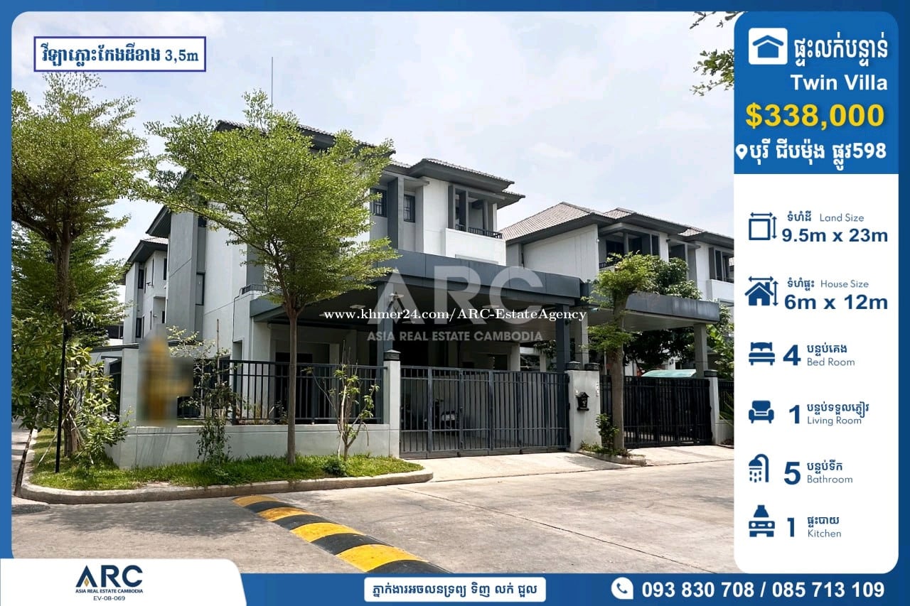 #Twin Villa For Sale at Borey Chip Mong Park Land 598 #វីឡាភ្លោះកែងដាក់លក់បន្ទាន់នៅក្នុងបុរី ជីបម៉ុង 598 ជិតផ្សារទំនេីបអុីអន២ 🔹 តម្លៃលក់ក្រោមទីផ្សារ :$338,000 (ចរចាម្ចាស់ផ្ទាល់) 🔹 កាត់ឈ្មោះប្លង់រឹងជូន 🔹 ទំហំដី : 9.5m x 23m 🔹 ទំហំផ្ទះ : 6m x 12m 🔹 បន្ទប់គេង : 04បន្ទប់ទឹក : 05 📍ទីតាំងត្រឹមតែ07នាទីពីផ្សារទំនើប AEON2 Makro សង្កាត់ច្រាំងចំរេះទី២ ,ខណ្ឌឬស្សីកែវ ,រាជធានីភ្នំពេញ សម្រាប់ពត៏មានលម្អិតសូមទំនាក់ទំនងមកក្រុមការងារ 085713xxxClick To Call / 093830xxxClick To Call / 0978899xxxClick To Call Chat to Telegram Agent https://t.me/sonsela14 Channel Telegram https://t.me/ARCKhanResseykeo 👉 អាជ្ញាប័ណ្ណ៖ EV-08-069