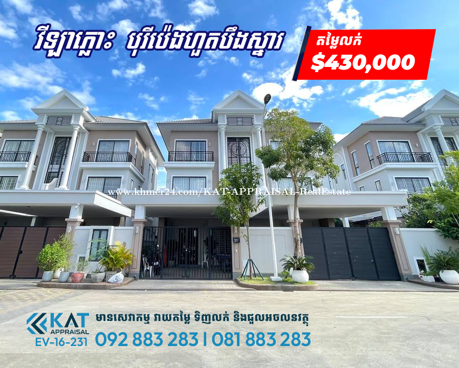 វីឡាភ្លោះប៊ីសម្រាប់លក់ | Twin B Villa For Sale - តម្លៃចរចា | Asking Price: $430,000 - ទំហំដី | Land Size: 8.3m x 25m - ទំហំផ្ទះ | House Size : 6m x 15m - បន្ទប់គេង | Bedroom: 5 - បន្ទប់ទឹក | Bathroom: 6 - បែរទិសជើង | Face to north - មានចំណូលប្រចាំខែ - ទីតាំង/ Location: សង្កាត់និរោធន៍ ខណ្ឌច្បារអំពៅ, រាជធានីភ្នំពេញ ។ Tel: 092883xxxClick To Call l 081883xxxClick To Call Telegram Chat : https://t.me/katappraisalsupport Telegram Channel : https://t.me/KAT_APPRAISAL