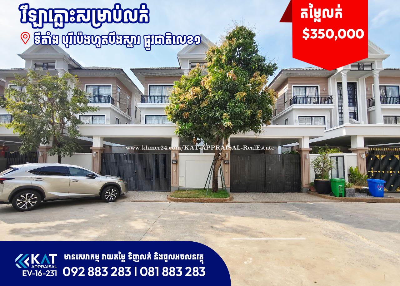 វីឡាភ្លោះប៊ីសម្រាប់លក់ | Twin B Villa For Sale - គម្រោងបុរីប៉េងហួតបឹងស្នោ អេកូមេឡូឌី Eco Melody -តម្លៃដាក់លក់ l Price : $350,000 ចរចា -ទំហំដី | Land Size: 7.7m x 25m -ទំហំផ្ទះ | House Size: 6m x 15m -បន្ទប់គេង | Bedroom: 5 -បន្ទប់ទឹក | Bathroom: 6 -ឯកសារ៖ ផ្ទេរឈ្មោះត្រឹមបុរី -បែរទិសត្បូងឈាងកើត | Face to South/East -ទីតាំង/ Location៖ ភូមិស្វាយតាអុក, សង្កាត់វាលស្បូវ, ខណ្ឌច្បារអំពៅ, រាជធានីភ្នំពេញ។ Tel: 092883xxxClick To Call l 081883xxxClick To Call Telegram Chat : https://t.me/katappraisalsupport Telegram Channel : https://t.me/KAT_APPRAISAL