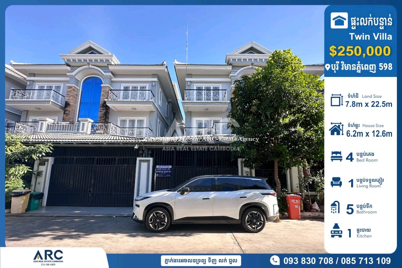 #Twin VIlla For Sale at Borey Vimean Phnom Penh 598 #វីឡាភ្លោះដេរគ័ស្អាតដាក់លក់បន្ទាន់នៅក្នុងបុរី វិមានភ្នំពេញ 598 គម្រោងទី08 ជិតផ្សារទំនេីបអុីអន២ 🔹 តម្លៃលក់ក្រោមទីផ្សារ : $250,000 (ចរចាម្ចាស់ផ្ទាល់) 🔹 កាត់ឈ្មោះប្លង់រឹងជូន 🔹 ទំហំដី : 7.8m x 22.5m 🔹 ទំហំផ្ទះ : 6.2m x 12.6m 🔹 បន្ទប់គេង : 04 បន្ទប់ទឹក : 05 📍ទីតាំងត្រឹមតែ05នាទីពីផ្សារទំនើប AEON2 Makro សង្កាត់ច្រាំងចំរេះទី២,ខណ្ឌឬស្សីកែវ ,រាជធានីភ្នំពេញ សម្រាប់ពត៏មានលម្អិតសូមទំនាក់ទំនងមកក្រុមការងារ 085713xxxClick To Call / 093830xxxClick To Call / 0978899xxxClick To Call Chat to Telegram Agent https://t.me/sonsela14 Channel Telegram https://t.me/ARCKhanResseykeo 👉 អាជ្ញាប័ណ្ណ៖ EV-08-069