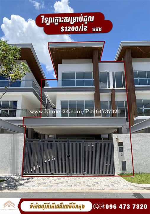 *តម្លៃជួល | Rental price: $1200/ខែ (ចចារ|Nigotiable) *ទំហំផ្ទះ | House size: 6m x 12m *ទំហំដី | Land size: 8m x 20m *បន្ទប់គេង | Bedrooms: 4 *បន្ទប់ទឹក | Bedrooms: 5 *បន្ទប់ទទួលភ្ញៀវ | Living Room: 1 *ផ្ទះបាយ | Kitchen: 1 *ម៉ាស៊ីនត្រជាក់ | Air conditioner: 4 *ទីតាំង | Location: Orkidē The Pochentong ________________________ Property Code: (9298)