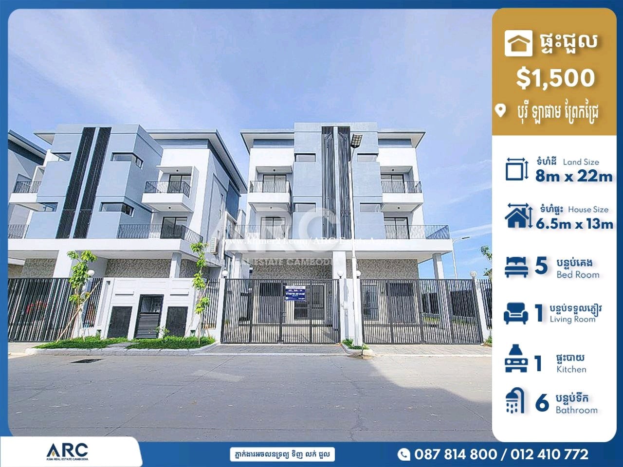 🏘️ វីឡាភ្លោះ(Twin Villa) សម្រាប់ជួលនៅបុរី ឡាផាម (ព្រែកជ្រៃ) 👉តម្លៃ: 1,500$(ចរចា) *ទំហំផ្ទះ House Size: 6.5m x 13m *ទំហំដី Land Size: 8m x 22m *បន្ទប់គេង Bedroom: 5 *បន្ទប់ទឹក Bathroom: 6 👉ផ្តល់ជូនសម្ភារ:ពេញ 👉ផ្ទះថ្មីស្អាត ៨នាទីពីផ្សារទំនើបអុីអន៣ មានសន្តិសុខ២៤ម៉ោង មានផ្សារ សាលារៀន មន្ទីរពេទ្យ..... 📍 នៅសង្កាត់ស្ពានថ្ម ខណ្ឌដង្កោ រាជធានីភ្នំពេញ Tel: 087814xxxClick To Call/ 012410xxxClick To Call/ 070410xxxClick To Call Telegram http://t.me/@Vebol087 Channel Telegram https://t.me/ARCDangkorVebol Channel telegram: https://t.me/AsiaRealEstateCambodia #ផ្ទះលក់បន្ទាន់ខ្លាំង #villaforsale #KhanDangkao #khanmeanchey 👉អាជ្ញាប័ណ្ណ:EV-08-069