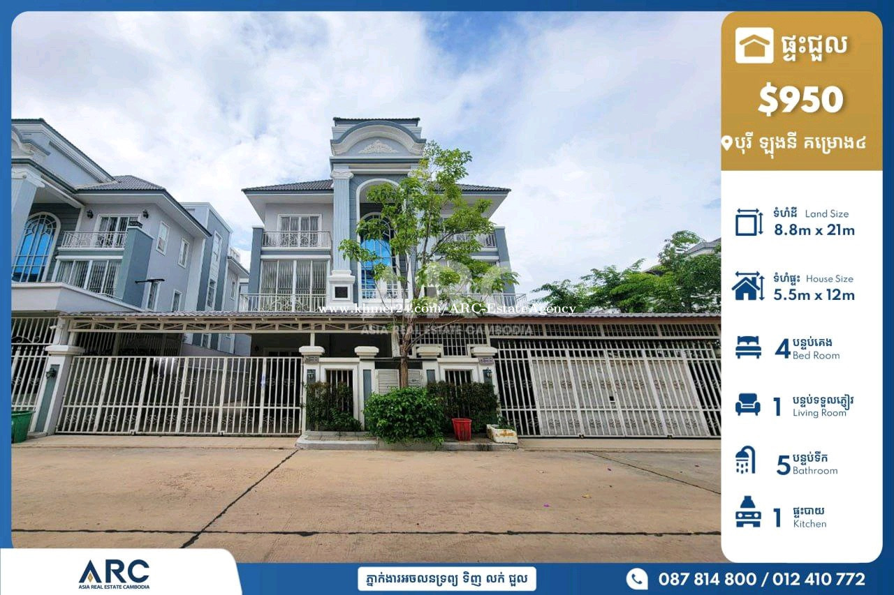 🏘️ វីឡាភ្លោះ(Twin Villa) សម្រាប់ជួលនៅបុរី ឡុងនី (គម្រោង៤) 👉តម្លៃ: 950$(ចរចា) *ទំហំផ្ទះ House Size: 5.5m x 12m *ទំហំដី Land Size: 8.8m x 21m *បន្ទប់គេង Bedroom: 4 *បន្ទប់ទឹក Bathroom: 6 👉សម្ភារ:មាន: (ម៉ាសុីនត្រជាក់ ៤គ្រឿង) 👉ទិសបែរ:(ត្បូង) 👉ផ្ទះថ្មីស្អាត ទល់មុខសាលារៀនប៊ែលធី មានសន្តិសុខ២៤ម៉ោង មានផ្សារ សាលារៀន មន្ទីរពេទ្យ..... 📍 នៅសង្កាត់ព្រៃស ខណ្ឌដង្កោ រាជធានីភ្នំពេញ Tel: 087814xxxClick To Call/ 012410xxxClick To Call/ 070410xxxClick To Call Telegram http://t.me/@Vebol087 Channel Telegram https://t.me/ARCDangkorVebol Channel telegram: https://t.me/AsiaRealEstateCambodia #ផ្ទះលក់បន្ទាន់ខ្លាំង #villaforsale #KhanDangkao #khanmeanchey 👉អាជ្ញាប័ណ្ណ:EV-08-069