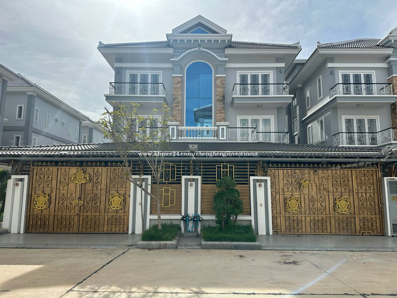 វីឡាភ្លោះសម្រាប់ជួល នៅបុរីវិមានភ្នំពេញ (ផ្ទះកែង) *តម្លៃជួល | Rent Price: $1,800 ចរចា * ទំហំវីឡា | Villa size: 12m x 12.6m * ទំហំដី | Land size: 16m x 22m * បន្ទប់គេង | Bedroom: 8 * បន្ទប់ទឹក | Bathroom: 10 * បន្ទប់ទទួលភ្ញៀវ | Living room: Nice *ទីតាំង: សង្កាត់ច្រាំងចំរះទី១ ខណ្ឌឬស្សីកែវ ភ្នំពេញ 📲Telegram: https://t.me/CHIvestment *ID: E-25-012