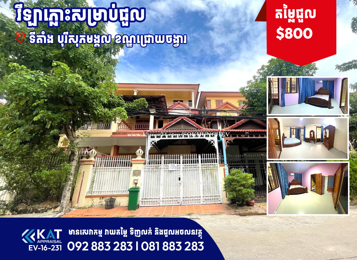 វីឡាភ្លោះសម្រាប់ជួល | Twin Villa For Rent -តម្លៃជួល| Aking Price: $800 -ទំហំដី | Land Size: 6m x 20m -ទំហំផ្ទះ | House Size:6m x 12m -បន្ទប់គេង | Bedroom: 4 -បន្ទប់ទឹក | Bathroom: 5 -សំភារះពេញ | Fully Funiture - ទីតាំង/ Location: បុរីសុភមង្គល សង្កាត់ជ្រោយចង្វារ ខណ្ឌជ្រោយចង្វារ Tel: 092883xxxClick To Call l 081883xxxClick To Call Telegram Chat : https://t.me/katappraisalsupport Telegram Channel : https://t.me/KAT_APPRAISAL