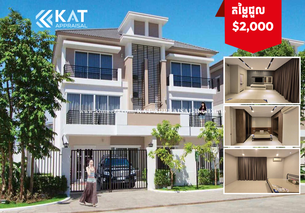 វីឡាភ្លោះសម្រាប់ជួល| Twin Villa For Rent លើផ្លូវធំ -តម្លៃជួល | Rent Price:$ 2,000 -ទំហំដី | Land Size: 8m x 22 -ទំហំផ្ទះ | House Size: 6m x 12 -បន្ទប់គេង | Bebroom: 4 -បន្ទប់ទឹក | Bathroom: 5 -សំភារះពេញ - ទីតាំង/ Location : បុរីប៉េងហួតបឹងស្នោរ សង្កាត់និរោធ ខណ្ឌច្បារអំពៅ Tel: 092883xxxClick To Call l 081883xxxClick To Call Telegram Chat : https://t.me/katappraisalsupport Telegram Channel : https://t.me/KAT_APPRAISAL