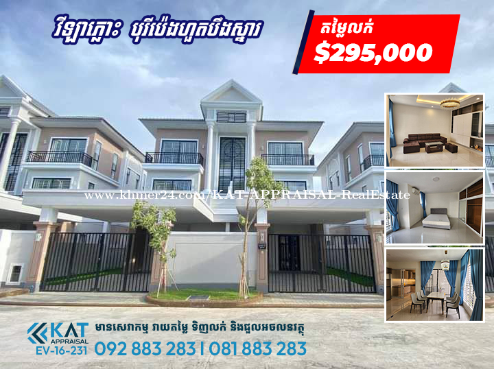 វីឡាភ្លោះសម្រាប់លក់ | Twin Villa For Sale -តម្លែចរចា | Asking Price : $295,000 -ទំហំផ្ទះ | House Size : 6mx12m -ទំហំដី | Land Size : 8mx22m -បន្ទប់គេង | Bedroom : 4 -បន្ទប់ទឹក | Bathroom : 5 - ឯកសារផ្ទេរឈ្មោះត្រឹមបុរី -បែរជើងឈៀងកើត -ទីតាំង/ Location : បុរីប៉េងហួតបឹងស្នោរ សង្កាត់វាលស្បូវ ខណ្ឌច្បារអំពៅ Tel: 092883xxxClick To Call l 081883xxxClick To Call Telegram Chat : https://t.me/katappraisalsupport Telegram Channel : https://t.me/KAT_APPRAISAL
