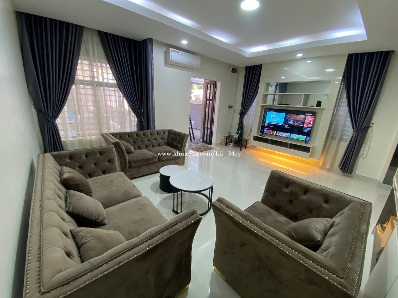 វីឡាភ្លោះA សម្រាប់ជួល | Twin Villa For Rent * តម្លៃជួល | Lease price: $1,800$/month * ទំហំដី | Land size :7.5m x 22m * ទំហំផ្ទះ | House size : 6m x 12m * បន្ទប់គេង | Bedrooms: 4 *បន្ទប់ទឹក l Bathrooms: 5 * ក្រោយ | Back: 9m * បែរទិស | Direct Face: ខាងជេីង (North) * ទីតាំងបុរីប៉េងហួត ដឹស្តាដាយមិន | Location in Borey Penghout The Star Diamond ** Contact: 012639xxxClick To Call | 012721xxxClick To Call | 0969555xxxClick To Call