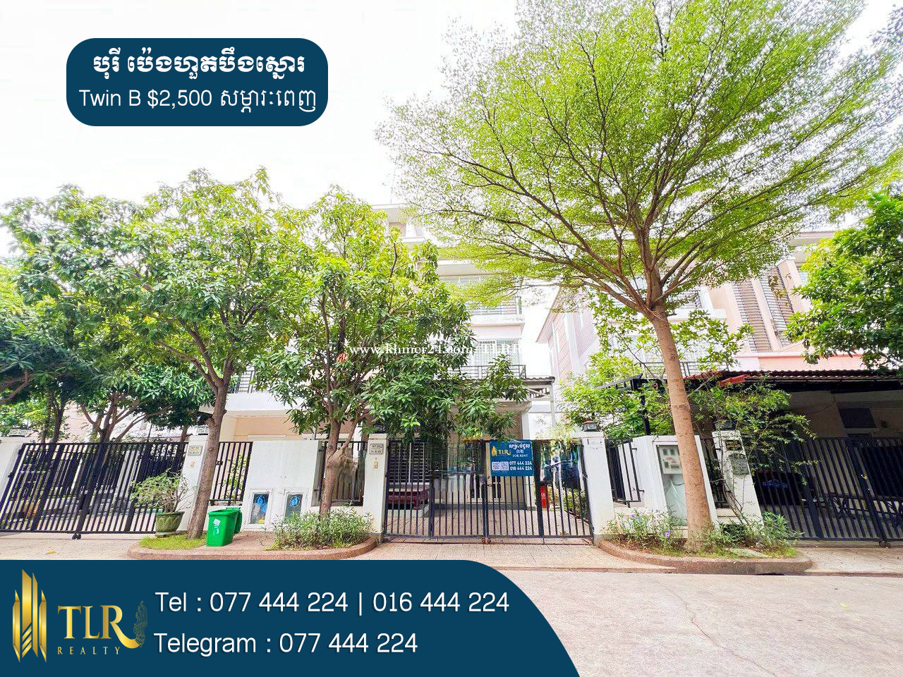 🏡វីឡាភ្លោះ B សម្រាប់ជួល | Villa Twin B for rent 💲តម្លៃជួល | Price Rent : $2,500 - សម្ភារៈ | Furniture : Fully Furnished - ទំហំផ្ទះ | House Size : 6m x 15m - ទំហំដី | Land Size : 8m x 22m - បន្ទប់គេង | Bedroom : 5 - បន្ទប់ទឹក | Bathroom : 6 - ផ្ទះបាយ | Kitchen : 1 - បន្ទប់ទទួលភ្ញៀវ | Livingroom : 1 - ផ្ទះបែរទៅខាងត្បូង | Facing to South 📍ទីតាំងស្ថិតនៅក្នុង បុរីប៉េងហួតបឹងស្នោរ គម្រោងរ៉ូសាតូ សង្កាត់និរោធ ខណ្ឌច្បារអំពៅ រាជធានីភ្នំពេញ | Location in Borey Peng Huoth Boeng Phnom Penh. # អត្តលេខអាជ្ញាប័ណ្ណ : E-24-449 📞 Cellcard : 077444xxxClick To Call 📞 Smart : 016444xxxClick To Call 📞 Metfone : 066444xxxClick To Call 📱 Telegram : 077444xxxClick To Call 📱 Channel telegram : https://t.me/RithyTLR