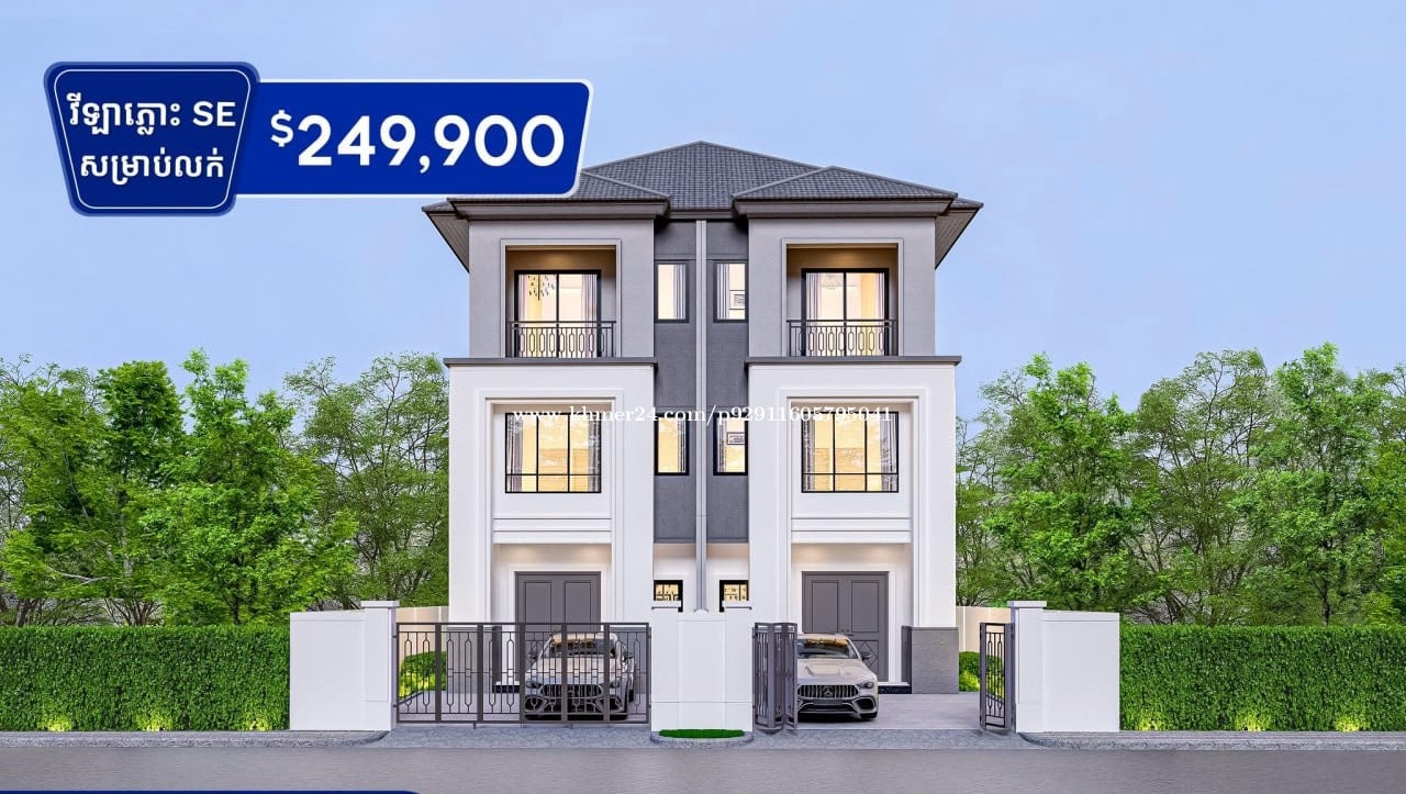 វីឡាភ្លោះ SE សម្រាប់លក់ នៅបុរីជីបម៉ុងផ្លូវ 271 Mega Mall ប្រញាប់ឡើង! ទីតាំងល្អមិននៅយូរទេ! - តម្លៃលក់ : 249,900$ ( ចរចា ) - ទំហំផ្ទះ : 5m x 12m - ទំហំដី : 6.5m x 20m - ផ្ទះថ្មី ( កំពុងសាងសង់) - ប្លង់ត្រឹមបុរី - បន្ទប់គេង: 4 - បន្ទប់ទឹក: 5 ☎️ 联系电话/ សូមទាក់ទង Tel : 078219xxxClick To Call / 015219xxxClick To Call ( 飞机同号) 和 微信 ID: Wan290598 * 谢谢你🙏